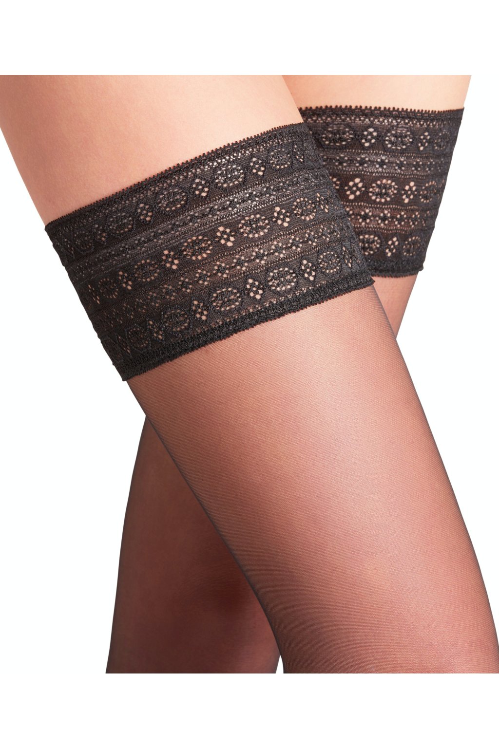 - Elegantné, priehľadné samodržiace pančuchy (stay-Up) s mierne lesklým vzhľadom