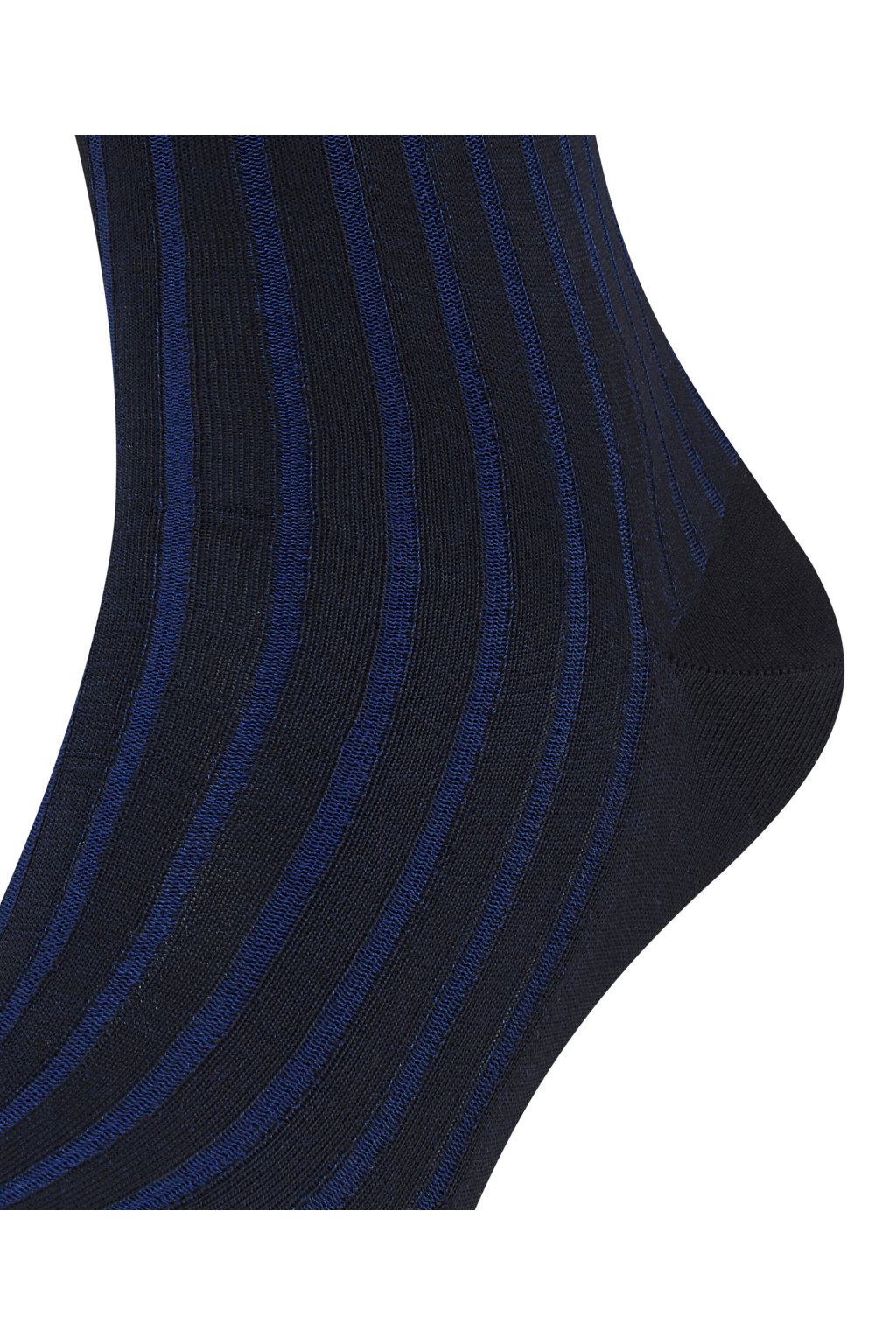 Elegantné, jemne vzorované biznis ponožky vyrobené z udržateľnej mercerizovanej bavlny s druhou farbou, ktorá je tieňom pôvodnej farby. Špička bez tlaku je vytvorená ručne prešívaným švom. Zosilnené namáhané zóny zaisťujú optimálnu odolnosť. Ponožky sa ľahko udržiavajú.
