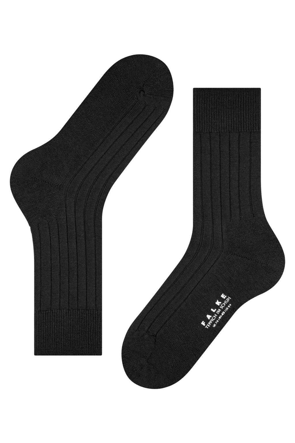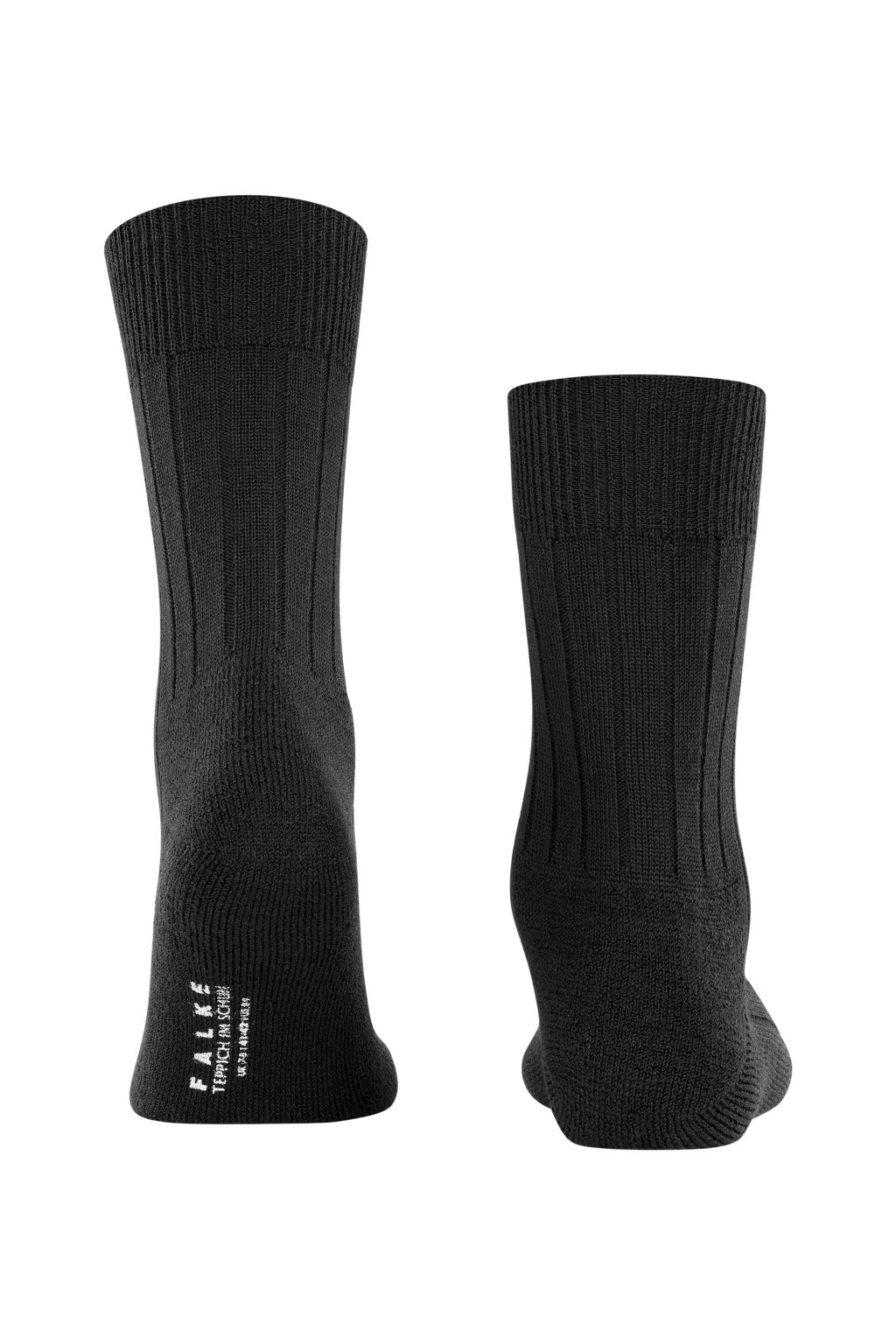 Ponožky FALKE Teppich im Schuh boli vyvinuté začiatkom 60. rokov 20. storočia ako pracovné ponožky. Plyšová podrážka chráni a tlmí chodidlo, ako aj špičku a pätu. Odolná merino vlna chráni a hreje celé chodidlo, čím zaisťuje optimálny odvod vlhkosti a dlhotrvajúcu odolnosť. Ručne šitý šev na špičke zabraňuje tlaku.