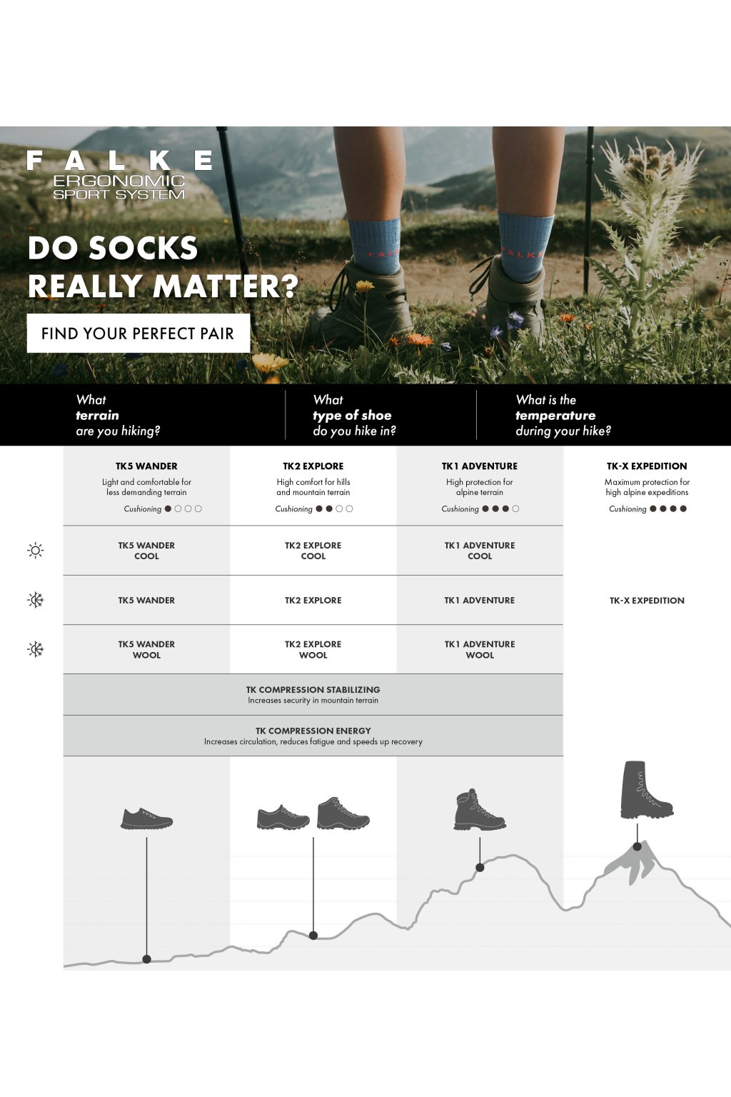 V lete alebo v zime – všestranné turistické ponožky „TK2 Explore“ zaručujú perfektnú teplotu a vysoké pohodlie pre vaše nohy vďaka rýchlemu odvádzaniu vlhkosti a optimálnemu prispôsobeniu. Od krátkych dobrodružstiev v nízkych horách až po jednodňové a dlhé túry a dokonca aj púte – vďaka stredne hustému odpruženiu udržia „TK2 Explore“ vaše nohy v suchu a bez pľuzgierov v teplom aj chladnom počasí, takže si môžete svoje dobrodružstvá užívať bez starostí.