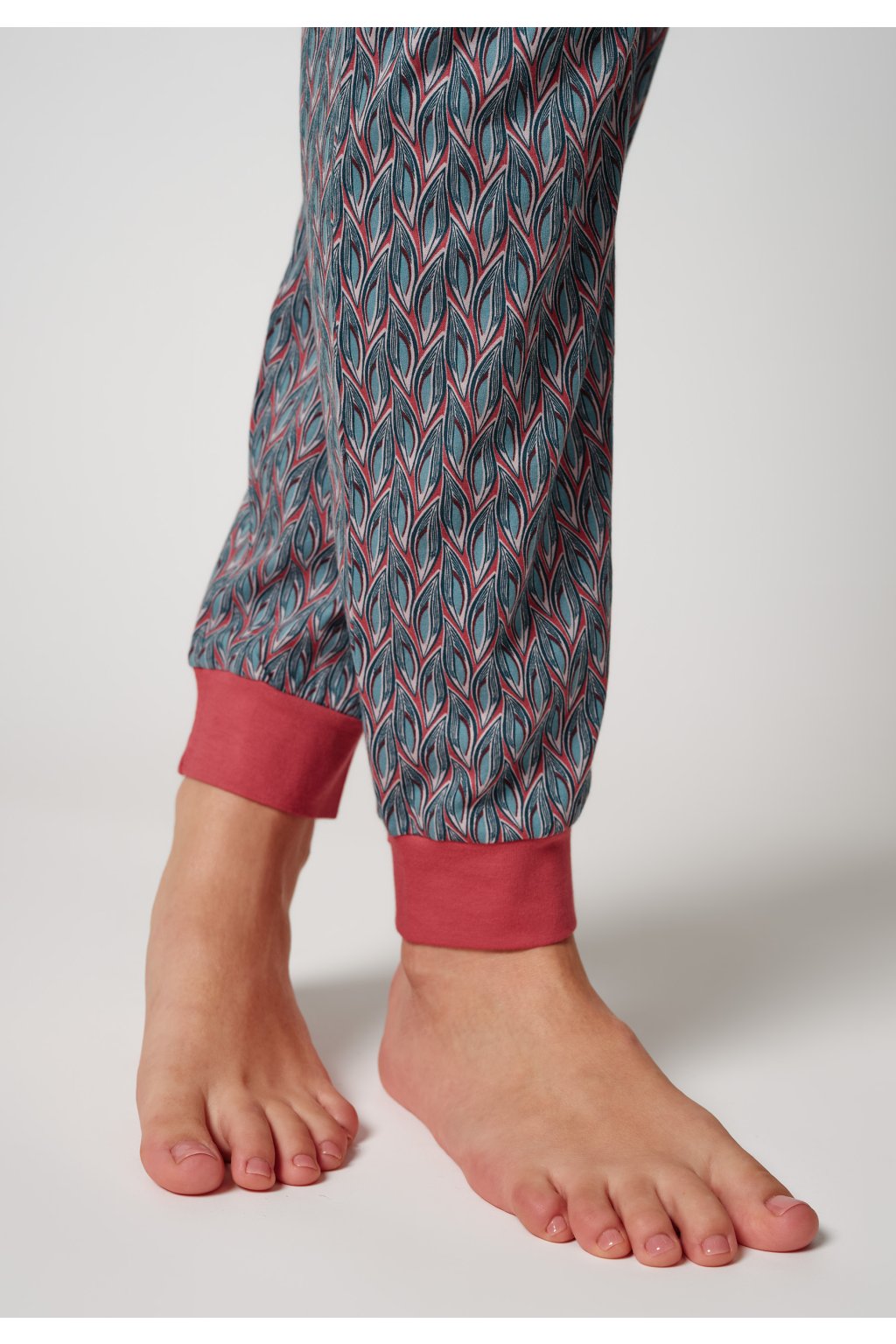 Dnešné ženy spia v nočnom oblečení vyrobenom z vysoko kvalitných a udržateľných materiálov – a to podporuje odpočinok. Táto pekná pyžamová súprava, ktorá sa skladá z topu s dlhým rukávom a dlhých pyžamových nohavíc, zaručuje práve takýto pocit pohody. Zloženie látky je obzvlášť mäkké a zároveň priedušné.