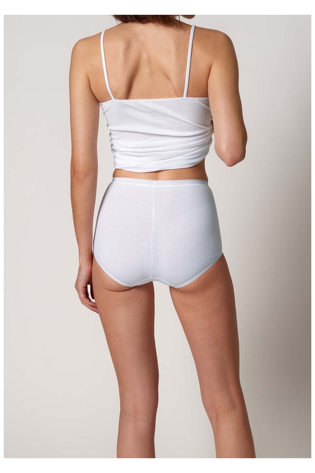 Vysoko strihané nohavičky v balení po 4 kusoch | Maxi nohavičky s priloženým pásom | Klasický dizajn s lemovaním, bez bočných švov | Jednoduchý džersej zo zmesi bavlny a elastanu | Vyrobené v Európe