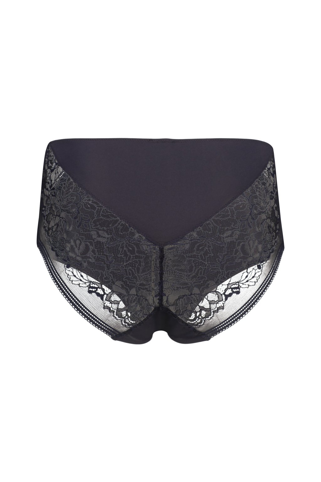 Dámske nohavičky s vysokým sedom | Kvetinová čipka na boku zadnej časti | Nepriehľadná spodná bielizeň z mikrovlákna v prednej časti | Elastické mikrovlákno pre väčšie pohodlie | Vysoká kvalita z recyklovaného polyamidu