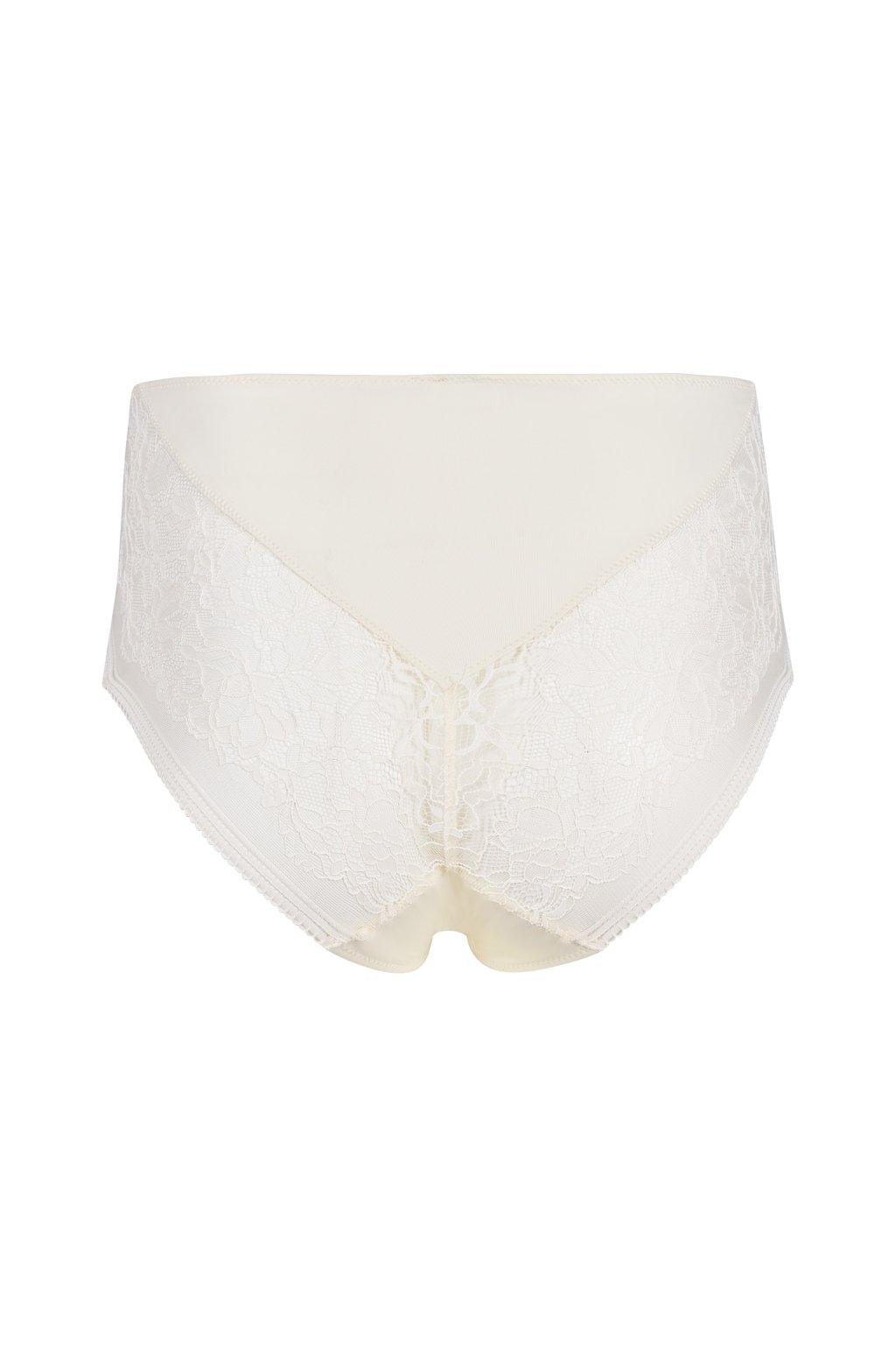 Dámske nohavičky s vysokým sedom | Kvetinová čipka na boku zadnej časti | Nepriehľadná spodná bielizeň z mikrovlákna v prednej časti | Elastické mikrovlákno pre väčšie pohodlie | Vysoká kvalita z recyklovaného polyamidu
