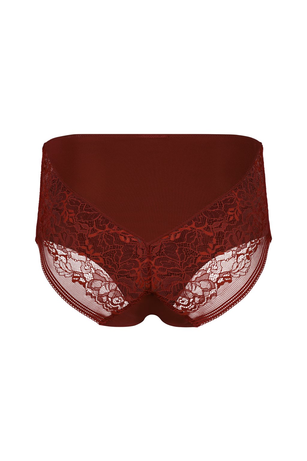 Dámske nohavičky s vysokým sedom | Kvetinová čipka na boku zadnej časti | Nepriehľadná spodná bielizeň z mikrovlákna v prednej časti | Elastické mikrovlákno pre väčšie pohodlie | Vysoká kvalita z recyklovaného polyamidu