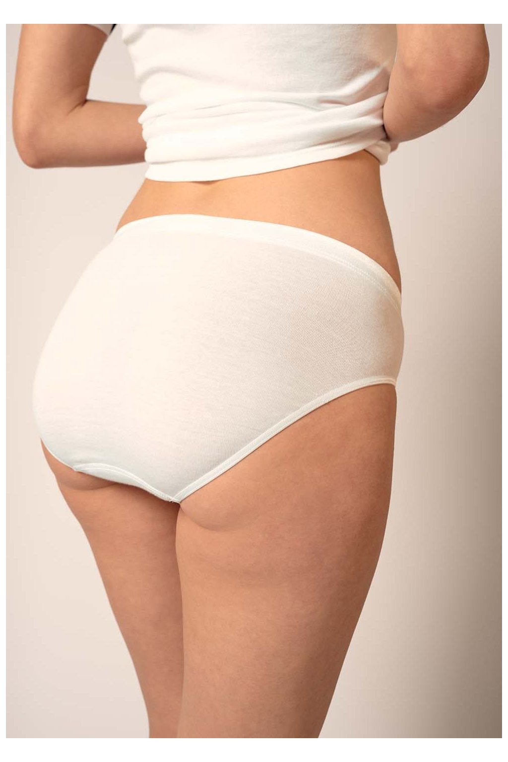 Midi nohavičky so stredným vzostupom | Mäkký elastický pás na vnútornej strane, lesklý na vonkajšej strane | Pohodlné nohavičky bez bočných švov | Jemné rebrovanie zo 100 % bavlny | Spodné prádlo vyrobené v Európe