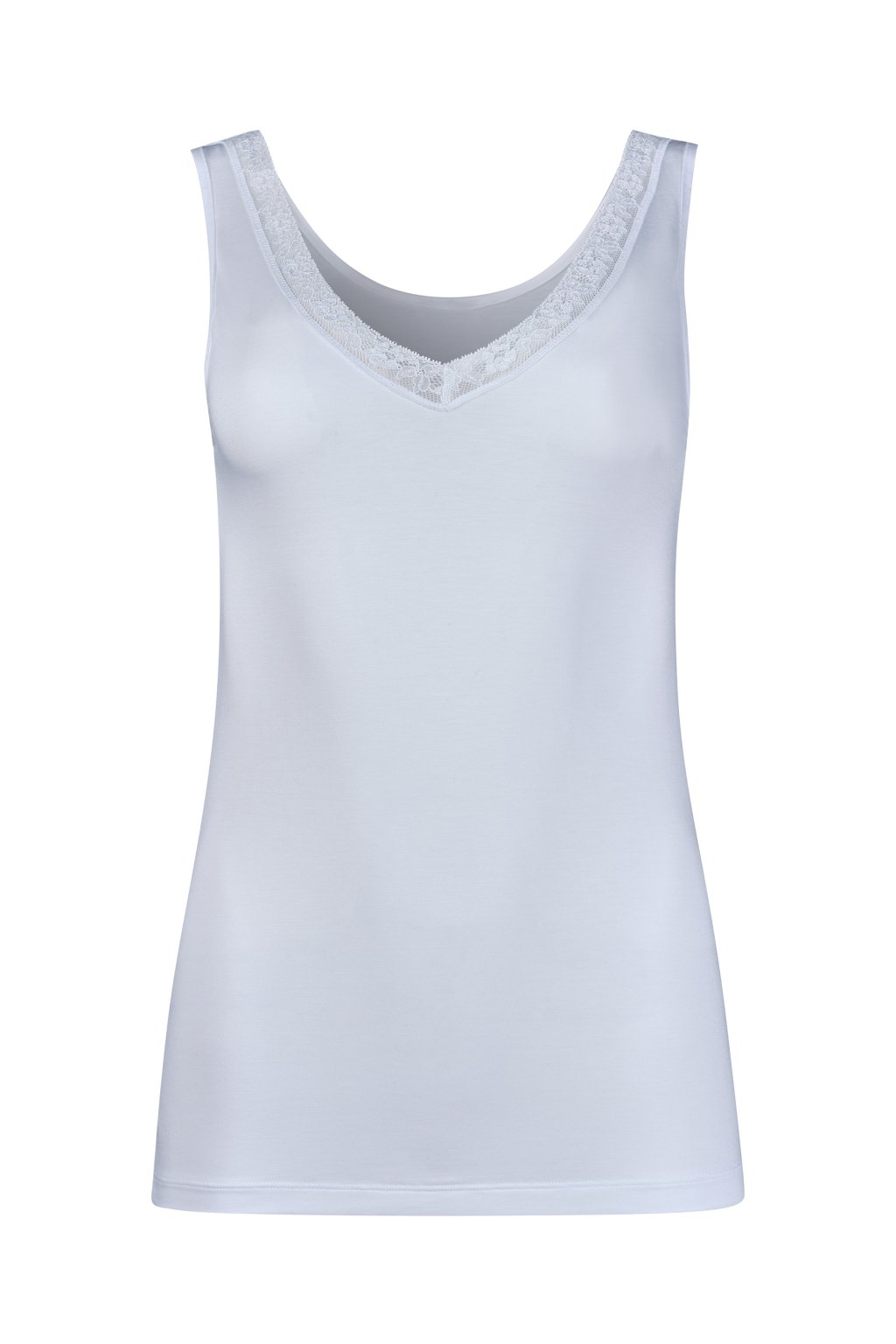 Dámske tielko z modalu a elastanu | Jemné čipkované vsadky vo výstrihu do V | Najlepšie pohodlie s dobrým pocitom | Úzke ramienka, perfektne padnúce | Výrazne kvalitný jednoduchý džersej z Rakúska