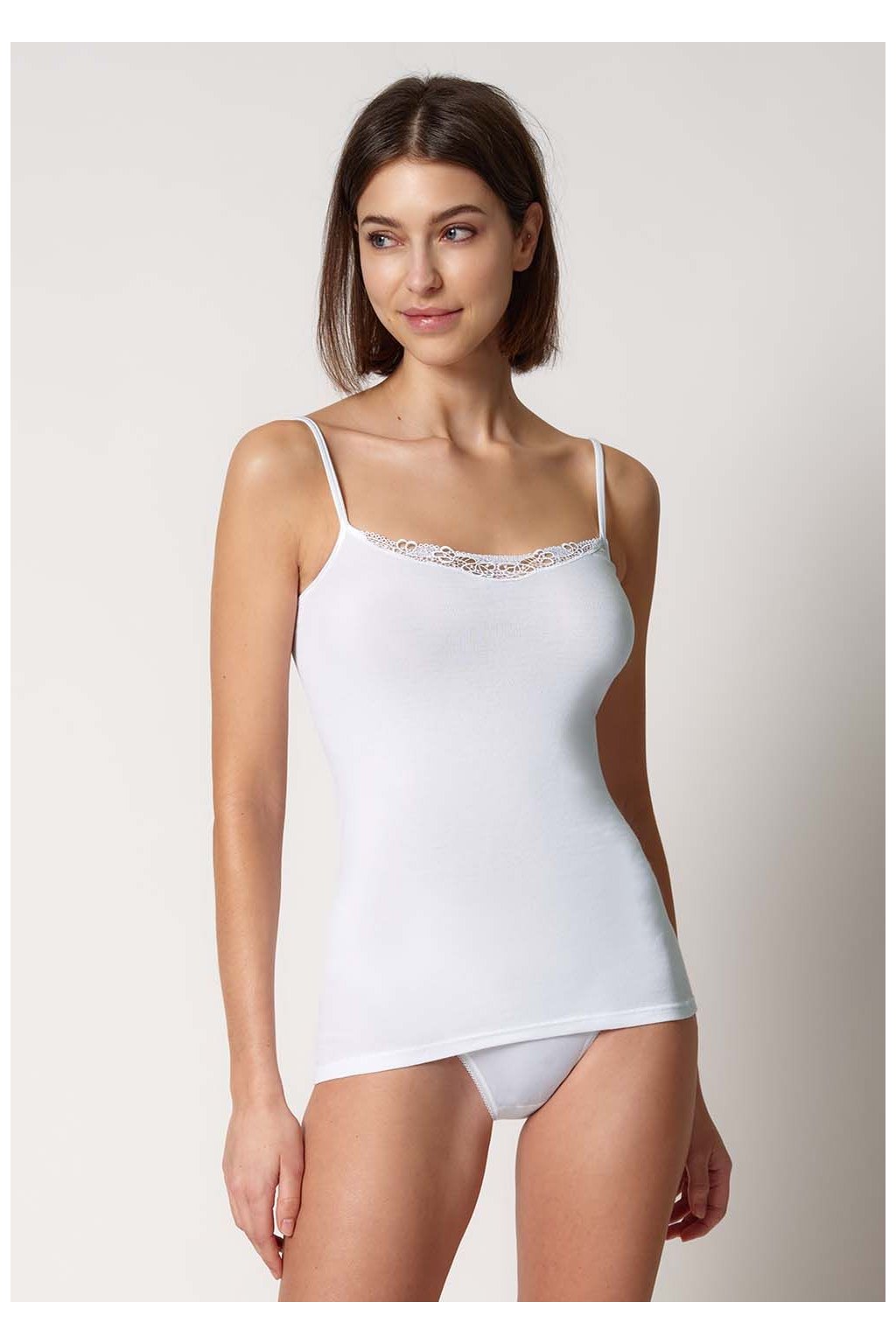 HUBER dámske tielko so špagetovými ramienkami Cotton Embroidery B25 - white