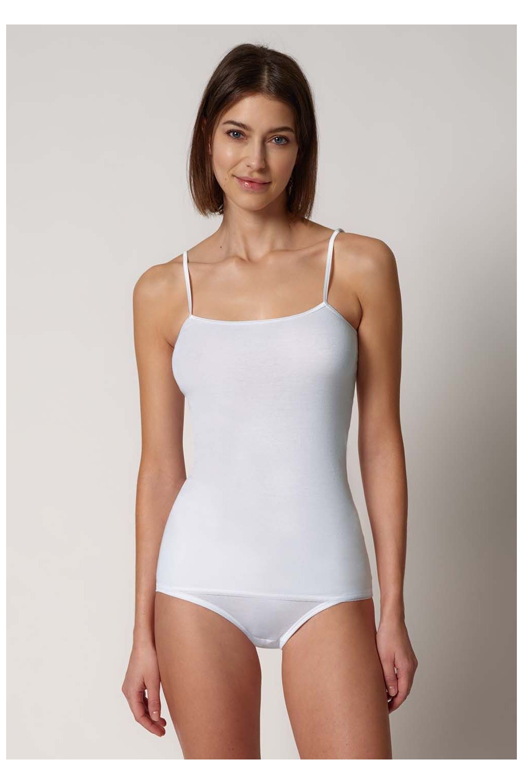 Špagetový top s okrúhlym výstrihom | Kruhová pletená spodná bielizeň bez dráždivých švov | Kvalitné rebrovanie zo 100 % bavlny | Jednoduchá údržba, odolnosť a trvácnosť | Vyrobené v Európe z látky z Rakúska