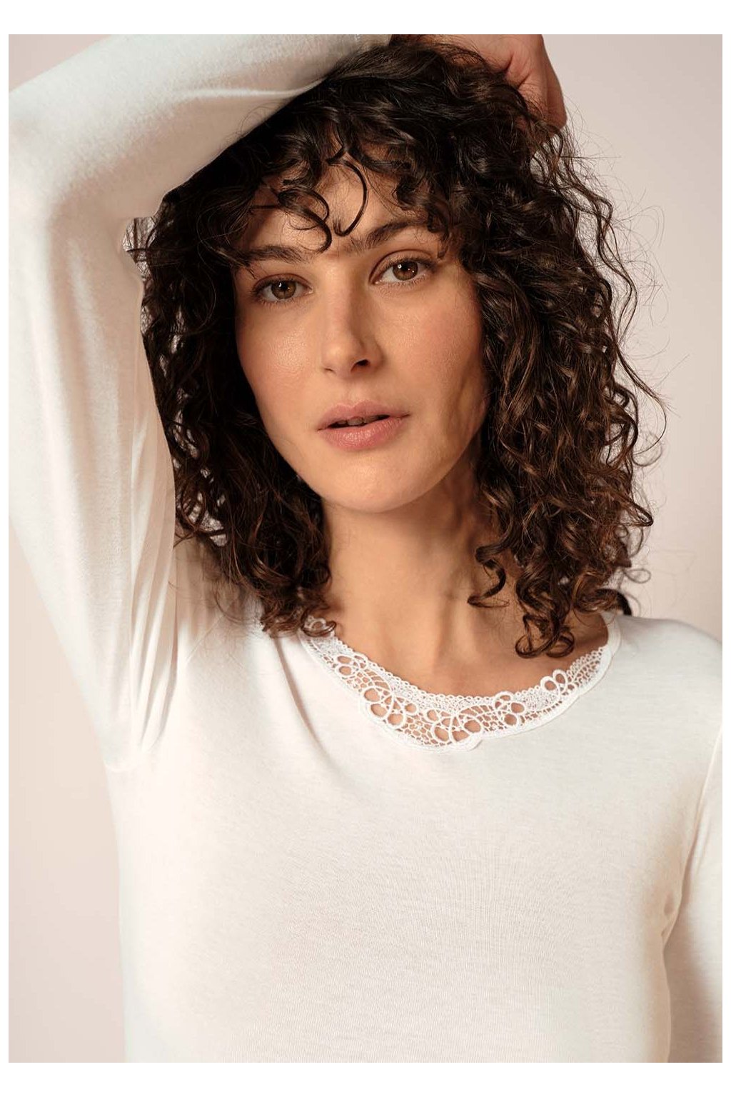 HUBER dámske tričko dlhý rukáv Cotton Embroidery B25 - white