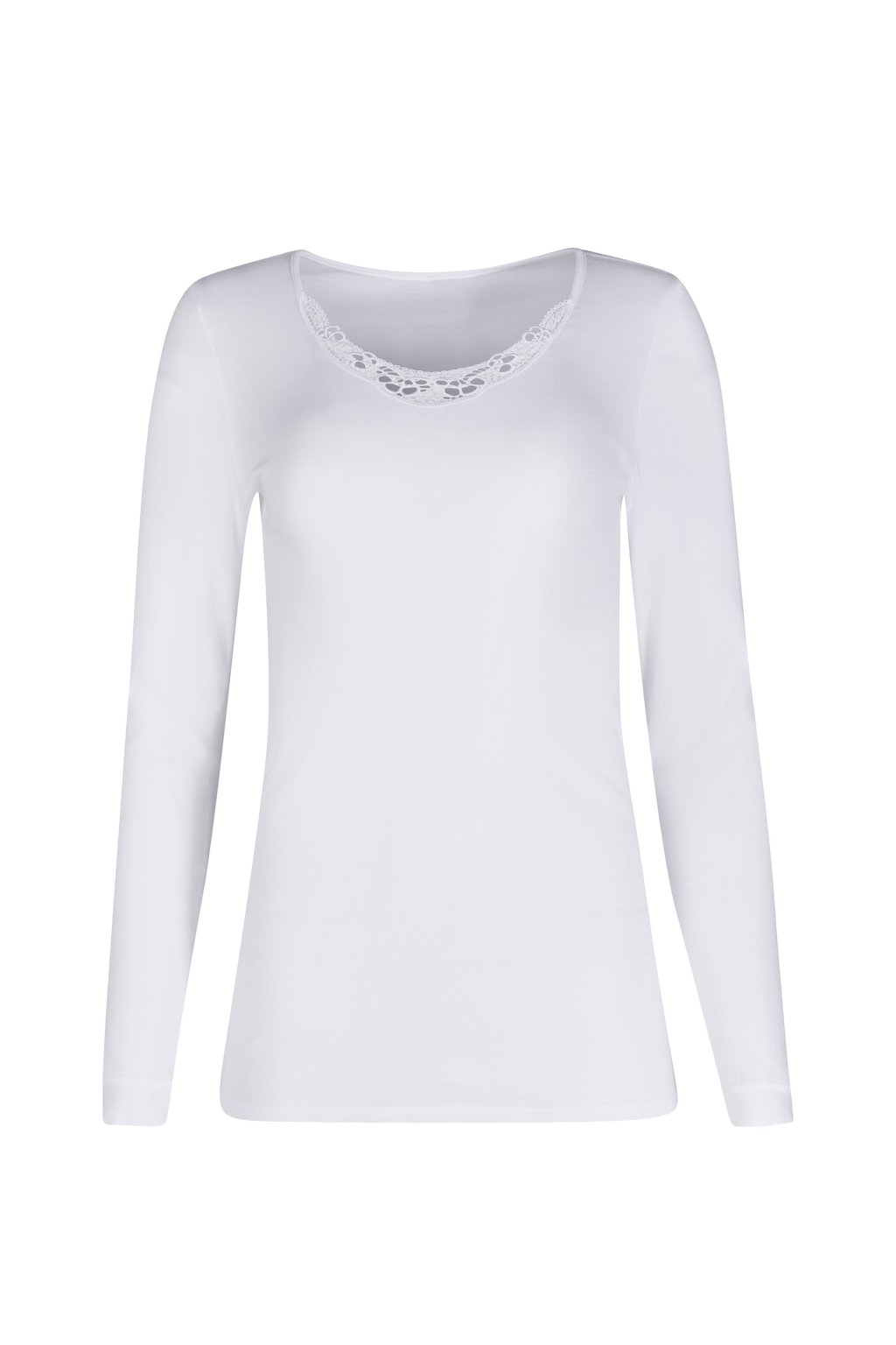HUBER dámske tričko dlhý rukáv Cotton Embroidery B25 - white