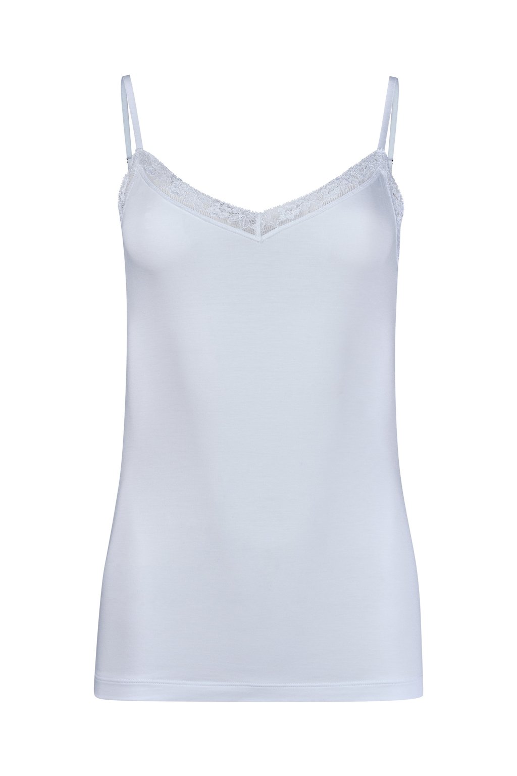 Splývavý top s úzkymi špagetovými ramienkami | Modal-elastan s čipkou vo výstrihu | Pohodlný na nosenie na mnoho príležitostí | Príjemne útulný s perfektným strihom | Výrazne kvalitný jednoduchý džersej z Rakúska