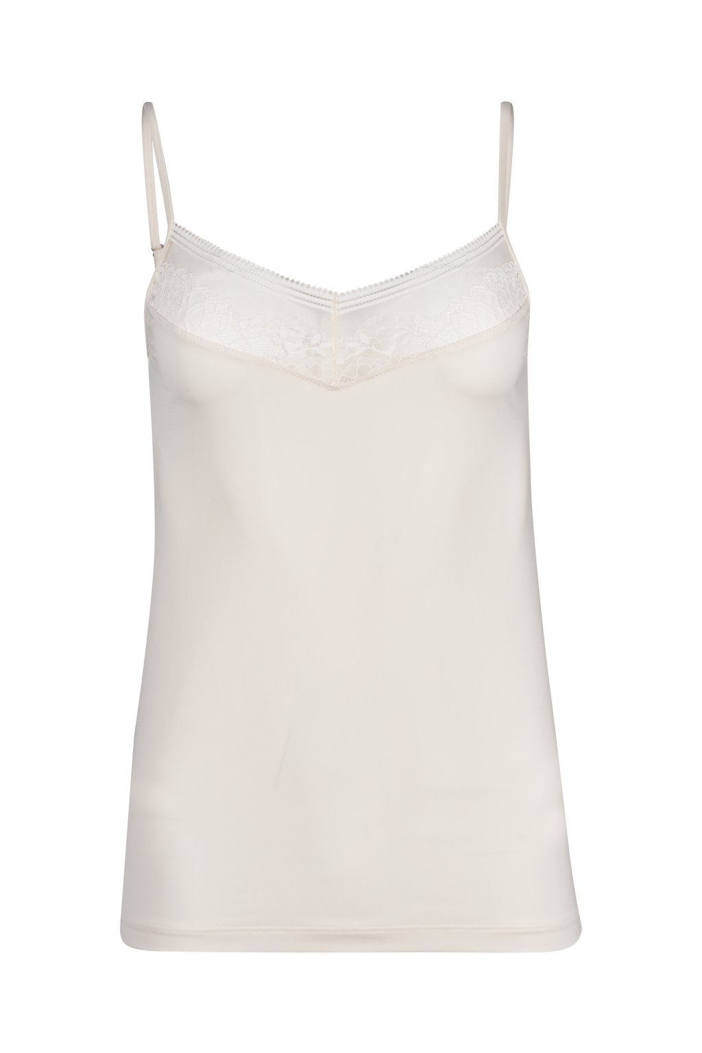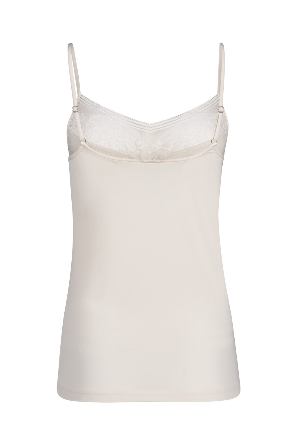 Tento špagetový top je ideálnou voľbou v najteplejších letných mesiacoch, ale aj počas chladnejších dní: ako ľahký top alebo pohodlná vesta. Jemná tkanina z mikrovlákna je príjemná na nosenie. Pekná čipka na výstrihu do V dodáva špagetovému topu aj mimoriadne ženský dizajn.