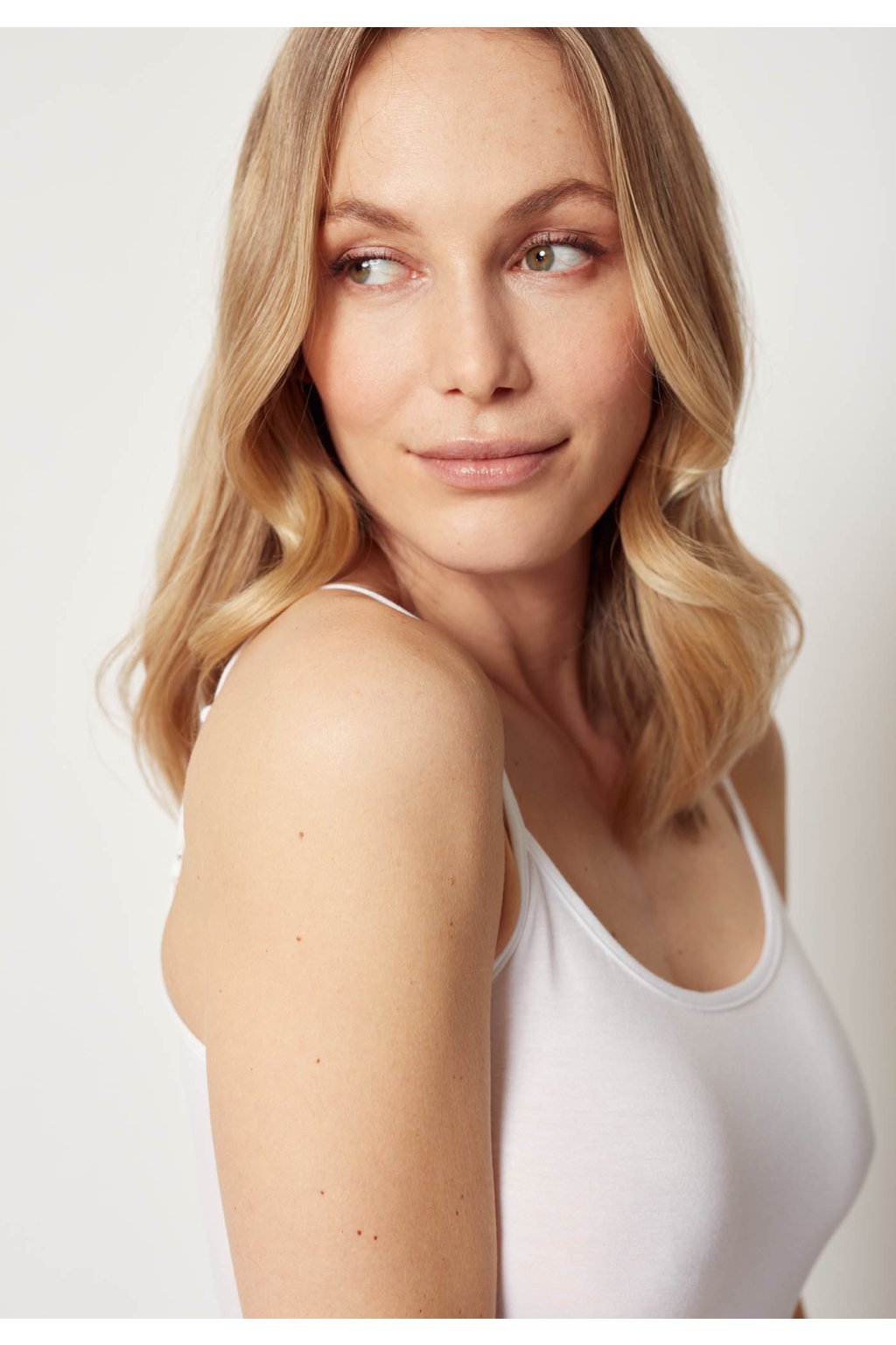 Dámsky top s nastaviteľnými špagetovými ramienkami | Klasický okrúhly výstrih | Vysokokvalitný jednoduchý džersej z modalových vlákien TENCELTM | Spodná bielizeň zo zodpovednej výroby v Európe | Rakúske tkaniny vyrobené z obnoviteľných zdrojov dreva