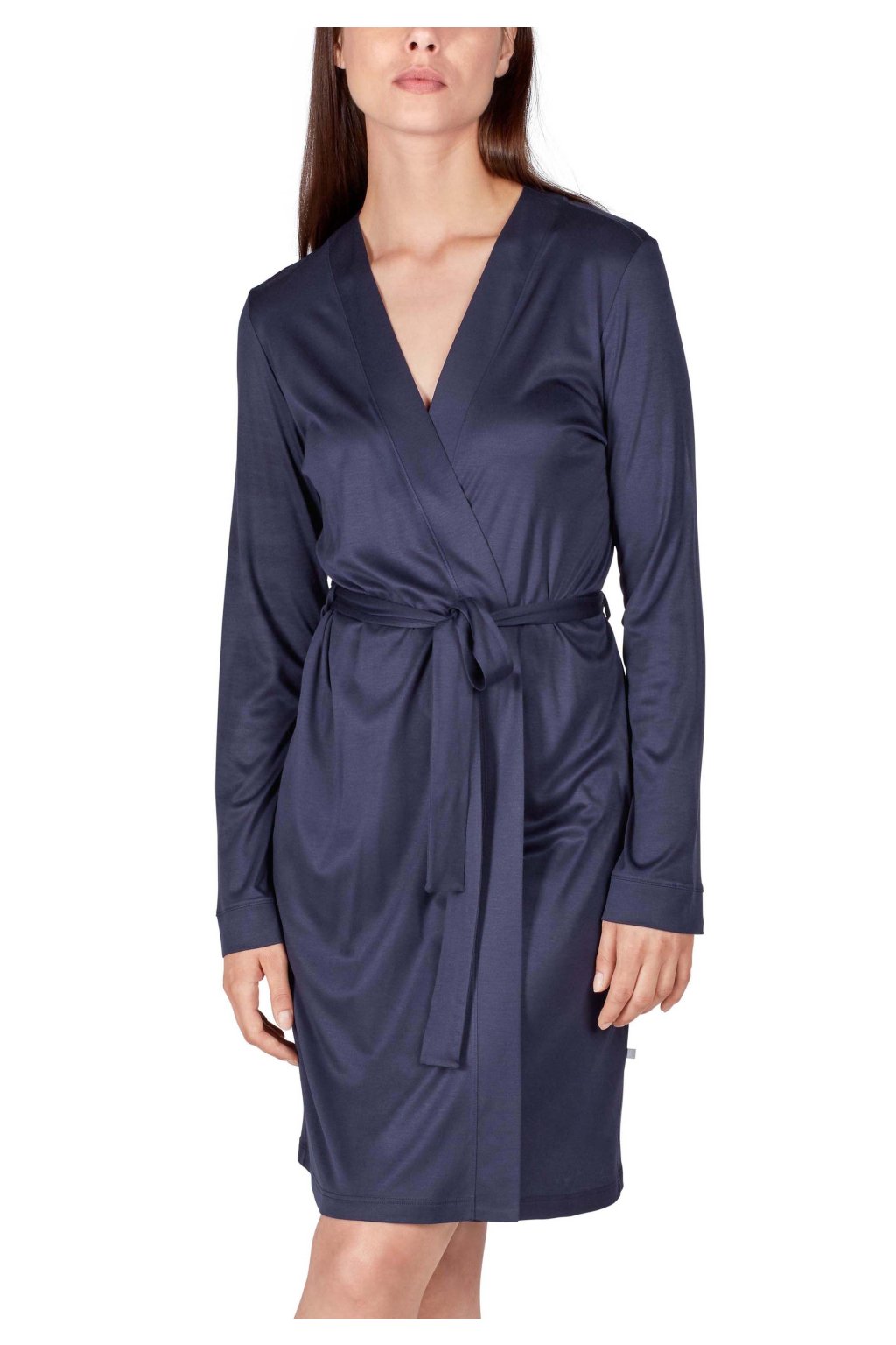 Dámsky župan vyrobený zo 100 % modalového interlocku, kvalitná látka z Rakúska s ušľachtilým leskom, elegantne jednoduchý strih s dĺžkou 90 centimetrov, 2 praktické vrecká v bočnom šve, župan sa zapína na opasok.