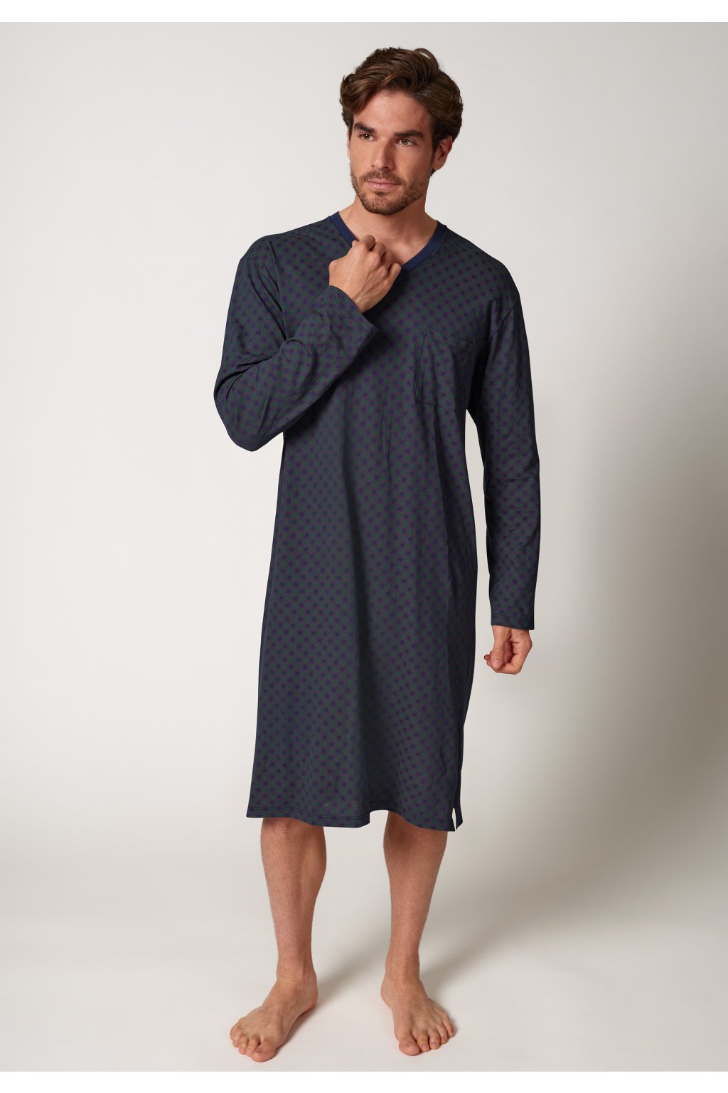 Pánska nočná košeľa s dlhými rukávmi | Rovný strih s výstrihom do V | Klasická nočná košeľa s náprsným vreckom a bočným rozparkom | Nadčasový jednoduchý džersej z organickej bavlny | Vyrobené v Európe z látky z Rakúska