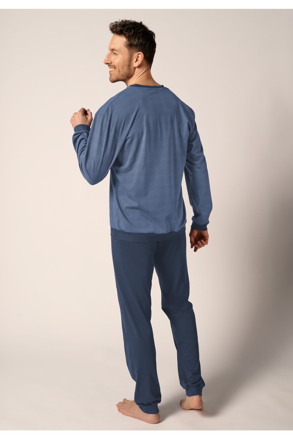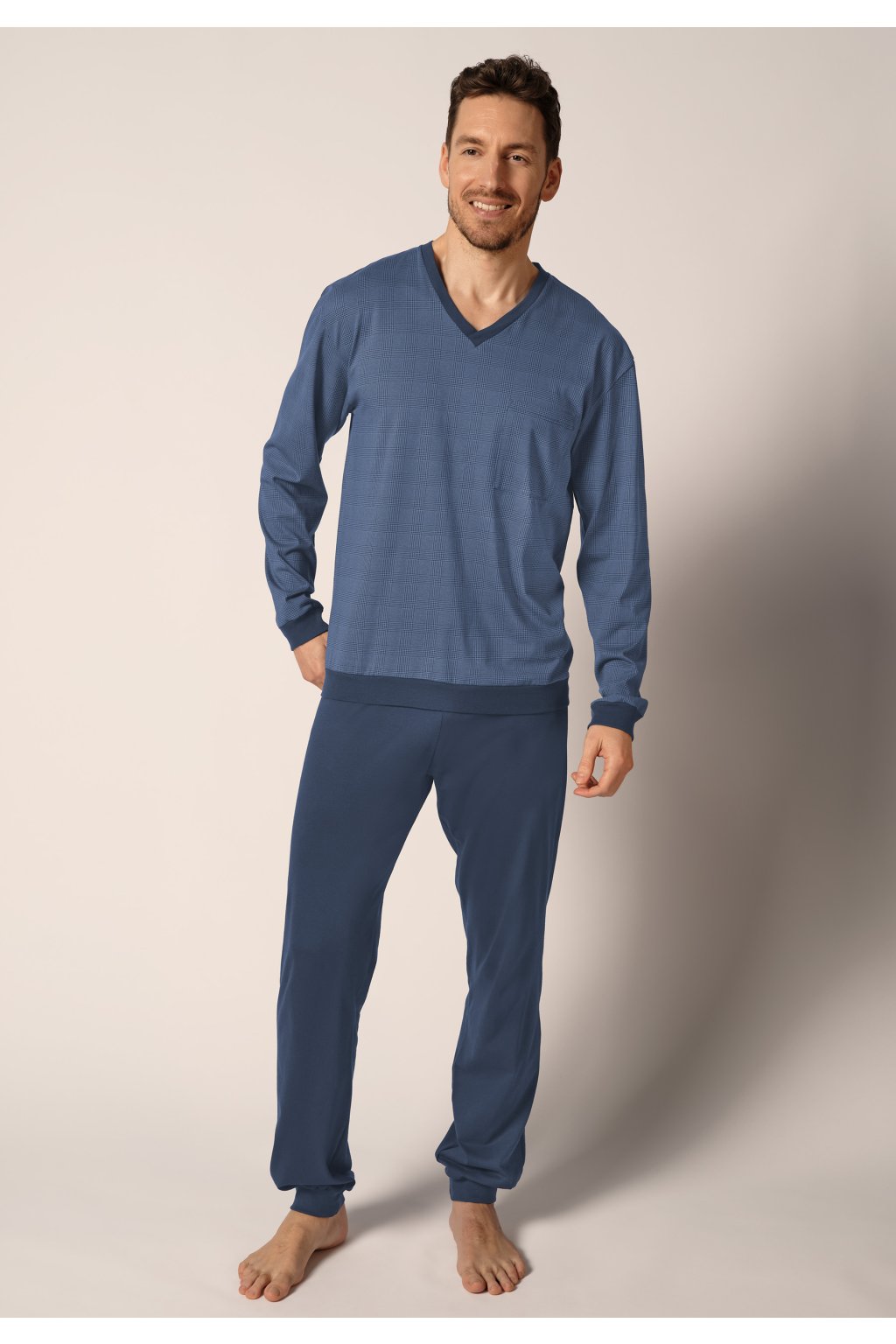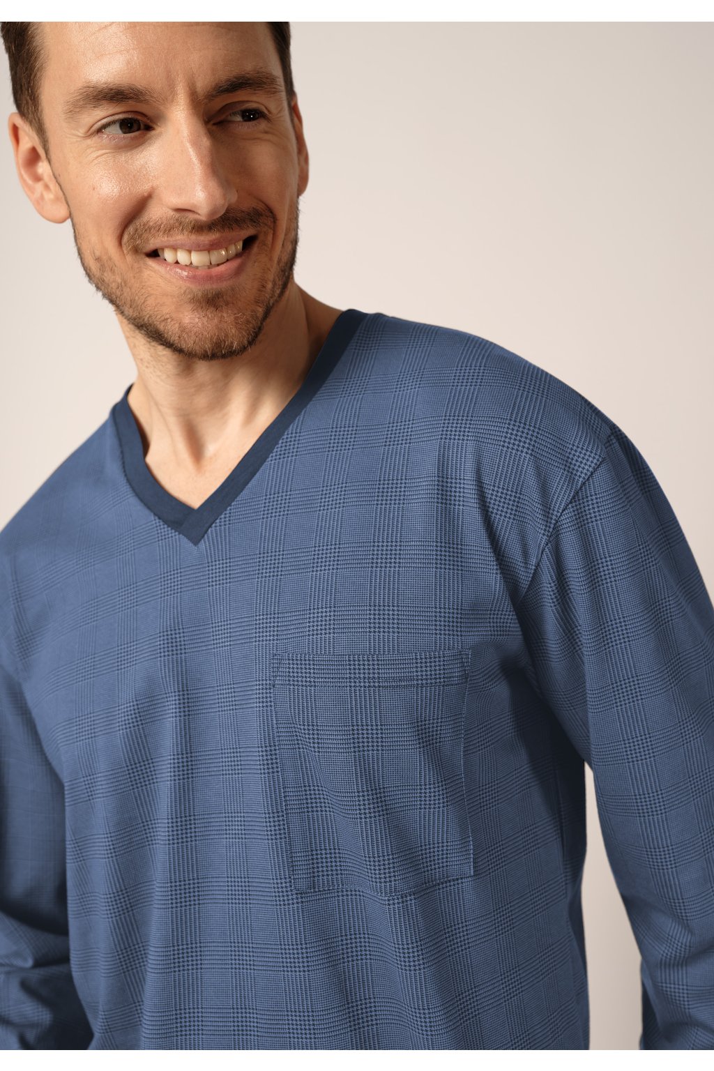 HUBER pánska pyžama dlhá Night Basic Selection B25 - denimblue houndstooth check