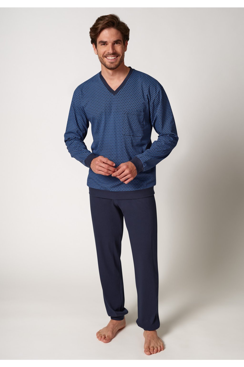 HUBER pánska pyžama dlhá Night Basic Selection W25 - blue fishernet