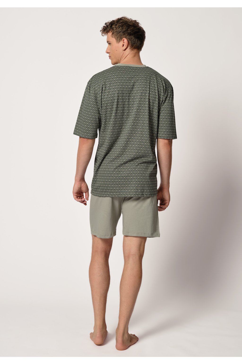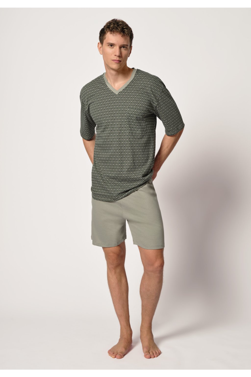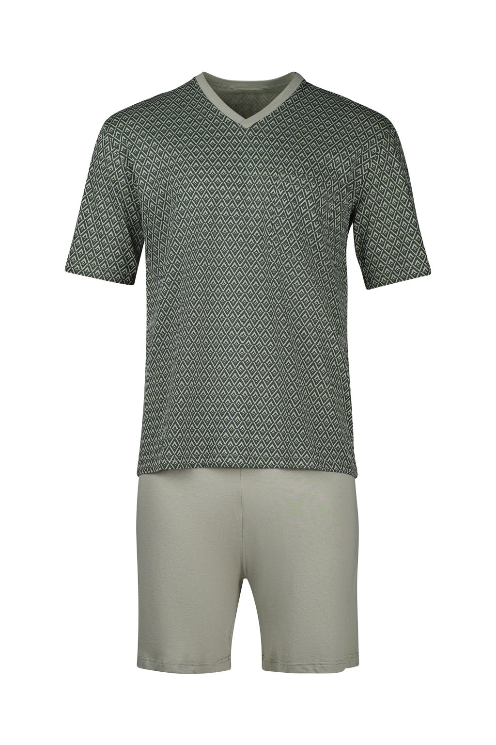 HUBER pánska pyžama krátka Night Basic Selection S24 - almostgreen rhombs