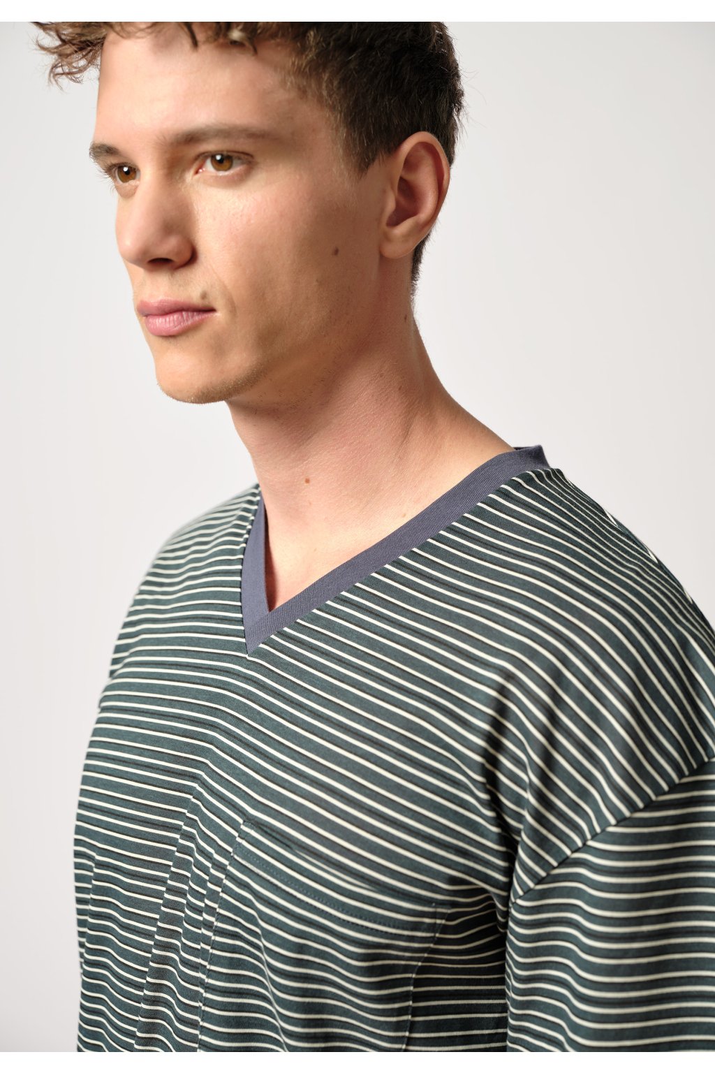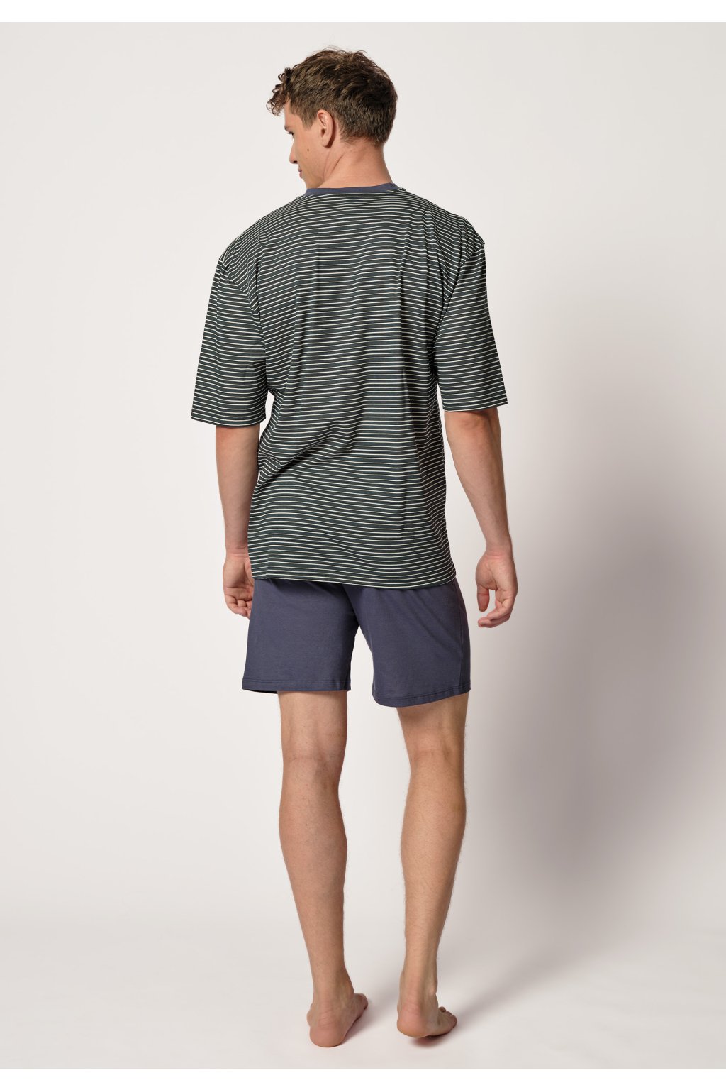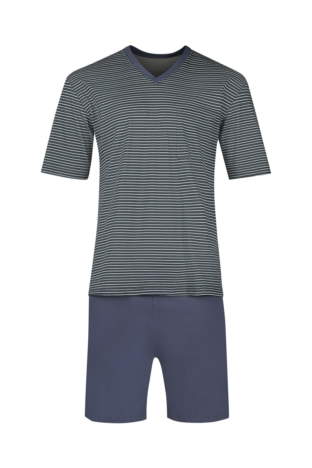 Rovné pánske tričko s krátkymi rukávmi | S výstrihom do V a náprsným vreckom | Krátke, pohodlné pyžamové nohavice | Elastický pás pokrytý látkou | Kvalitný bavlnený džersej