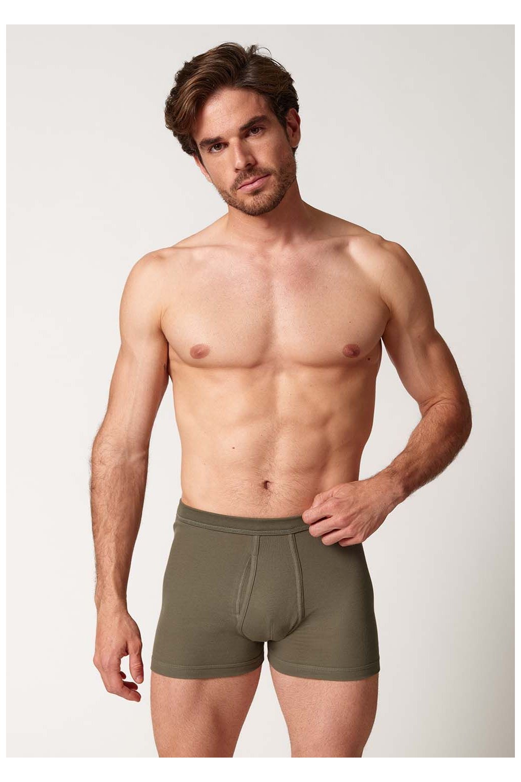 HUBER pánske panty krátka noha Cotton Fine Rib B25 - military