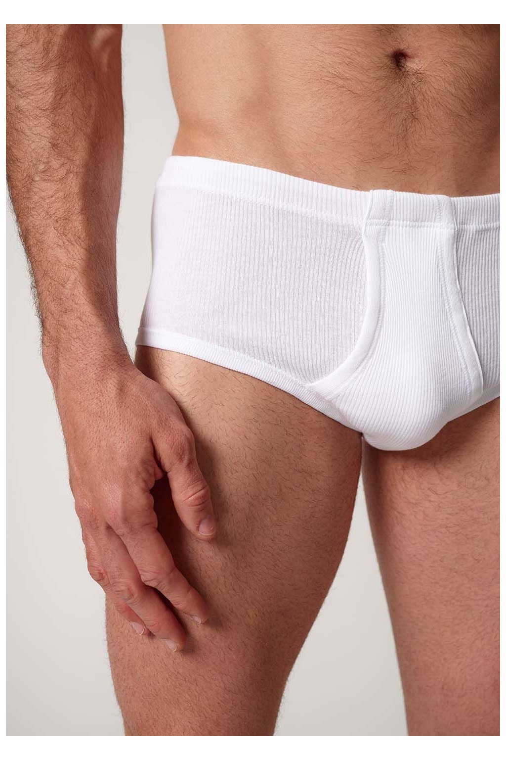 Pánske slipy v dvojitom balení | Spodky s otvorom na suspenzore | Vnútorný elastický pás pre väčšie pohodlie | Dvojité rebrovanie zo 100 % bavlny | Obzvlášť ľahké na údržbu, odolné a trvácne