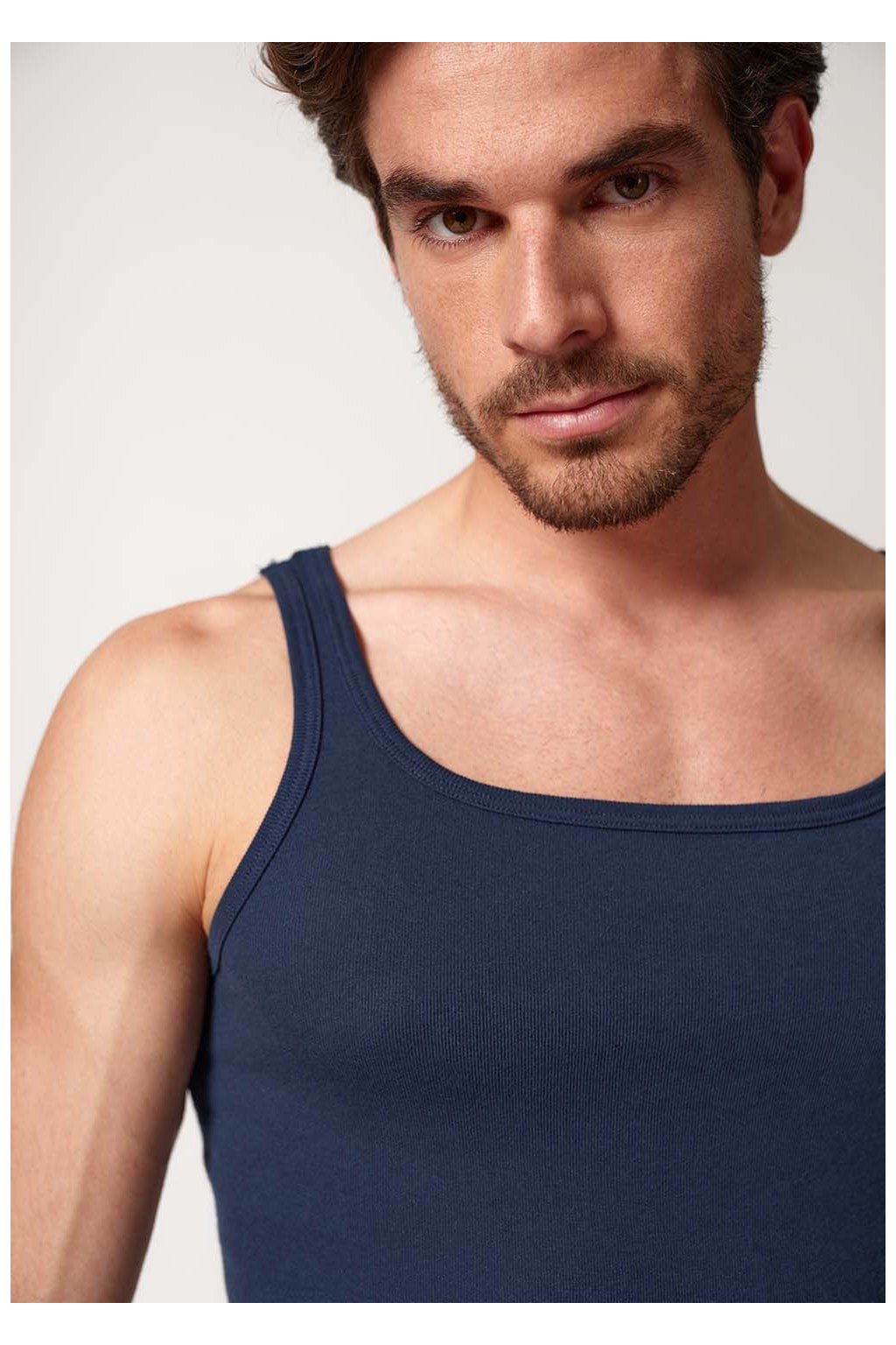 Priliehavé pánske tielko | Nadčasový dizajn s okrúhlym výstrihom | Jemné rebrované tielko bez bočných švov | Odolné tielko zo 100 % bavlny v podpazuší | Vyrobené v Európe z tkanín z Rakúska