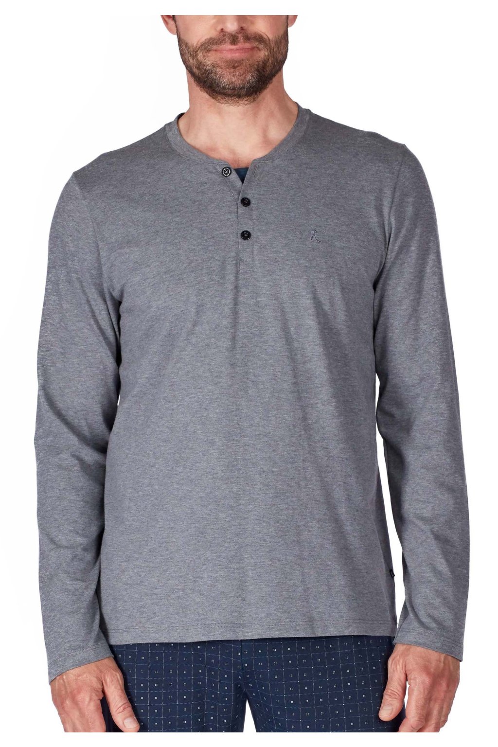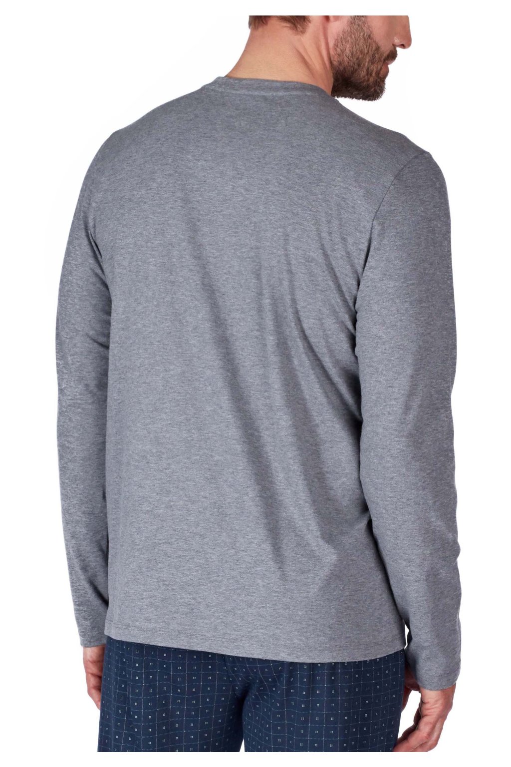 Pánske tričko s dlhým rukávom z vysoko kvalitnej bavlny Supima, efekt vrstvenia na okrúhlom výstrihu a výšivka loga, ležérny strih pre pohodlie a slobodu pohybu, melanžová tkanina vyrobená v Rakúsku, nočná bielizeň v jesenných tónoch na chladné obdobie