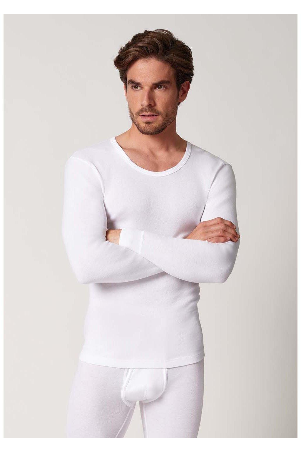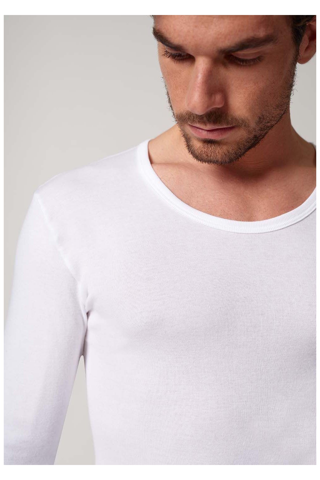 HUBER pánske tričko dlhý rukáv Cotton Fine Rib B25 - white
