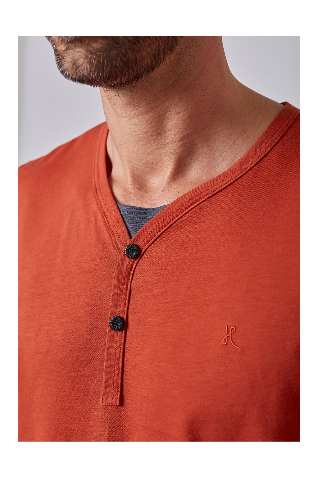 Pánske tričko s dvojgombíkovým zapínaním a výstrihom do V; top s vyšívaným logom HUBER; košeľa Henley vyrobená zo 100 % prémiovej bavlny Supima.
