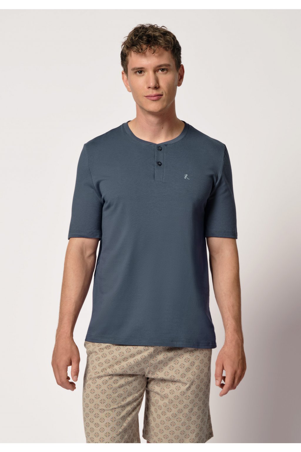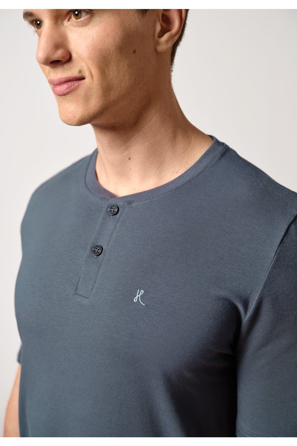 Košeľa s krátkymi rukávmi a okrúhlym výstrihom | Krátka gombíková léga na golieri | Rovný strih pre maximálne pohodlie | Jednoduchý džersej z organickej bavlny | Vyrobené v Európe z látky z Rakúska