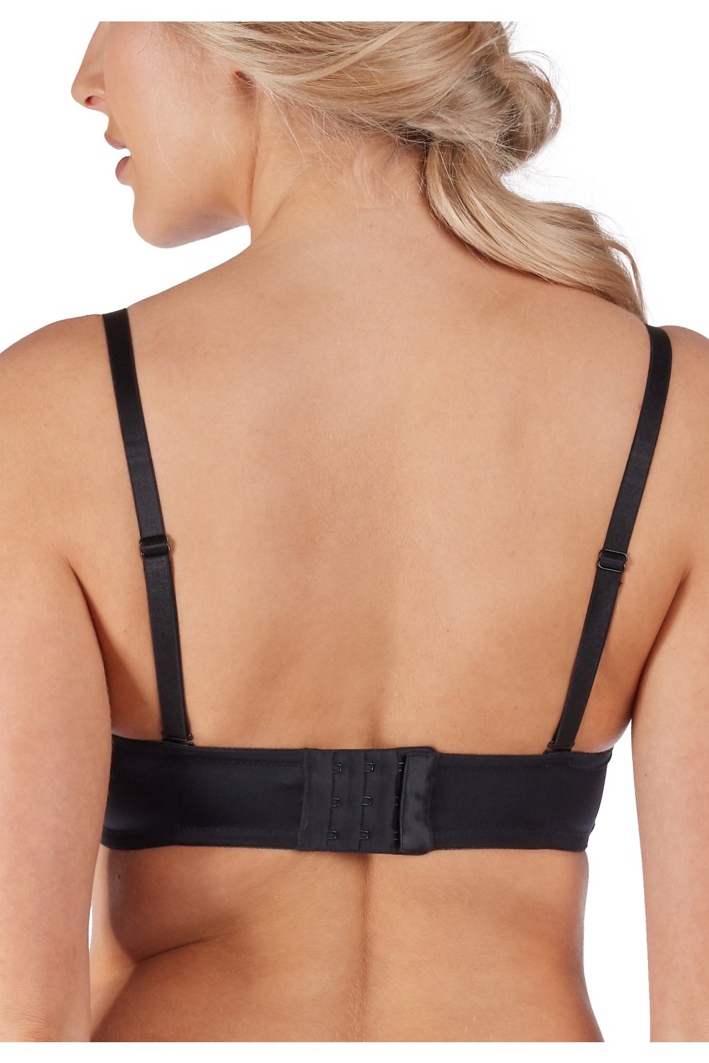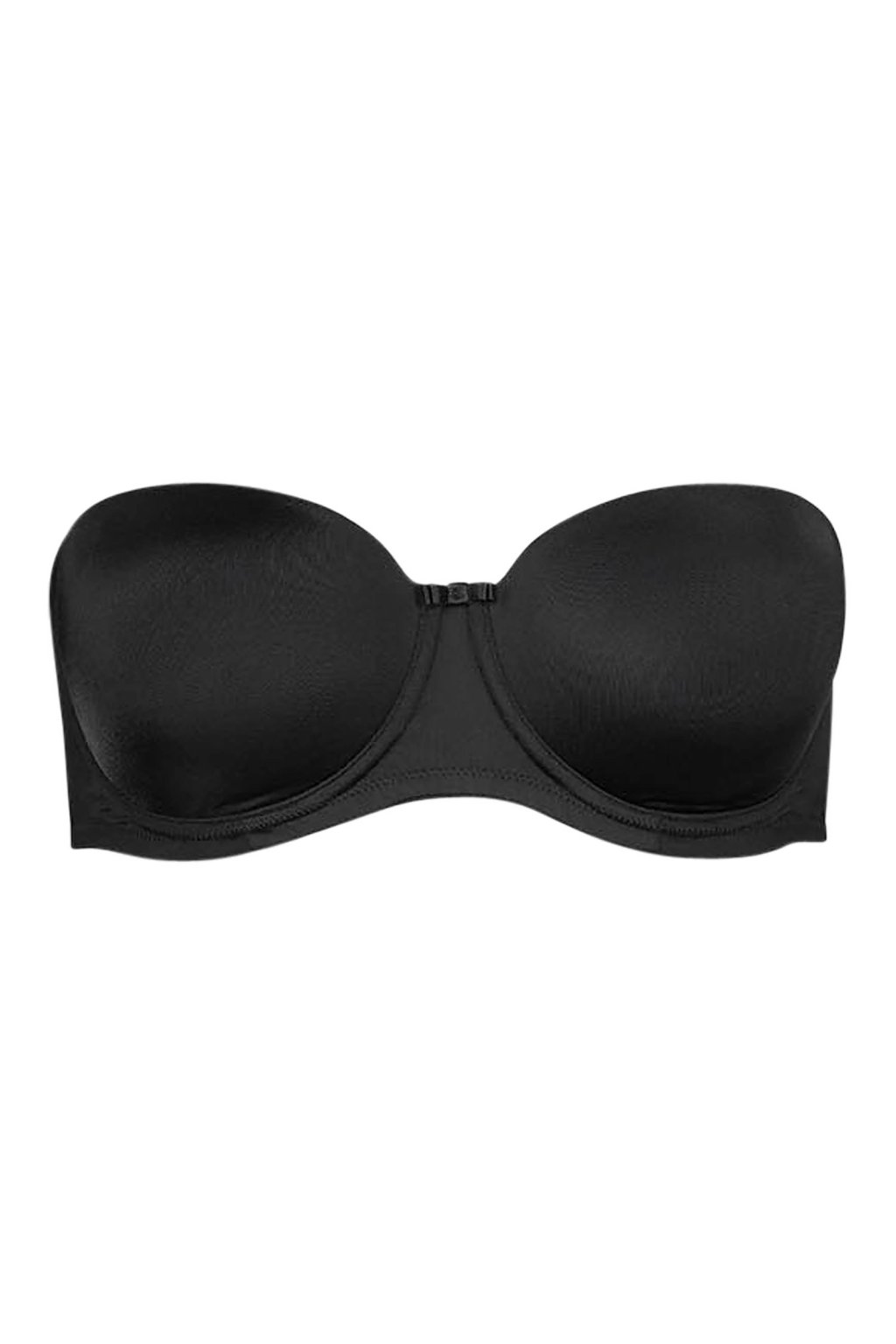 Vystužená bandeau podprsenka s kosticami\Malá ozdobná mašľa v strede prednej časti\Silikónový pásik na bokoch pre lepšiu podporu\Možno nosiť rovno, prekrížene alebo úplne bez ramienok\Nastaviteľné zapínanie na háčiky pre prispôsobenie