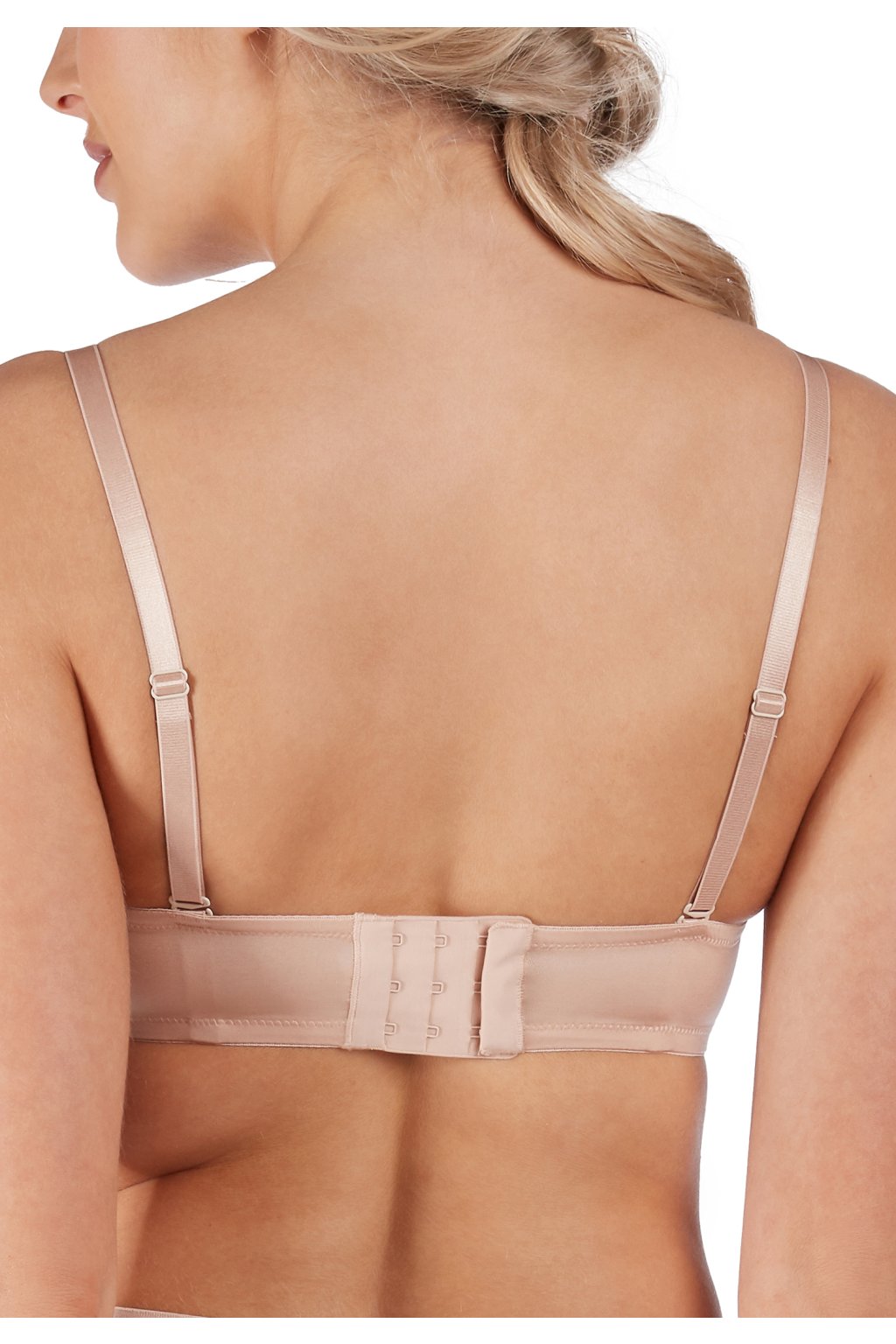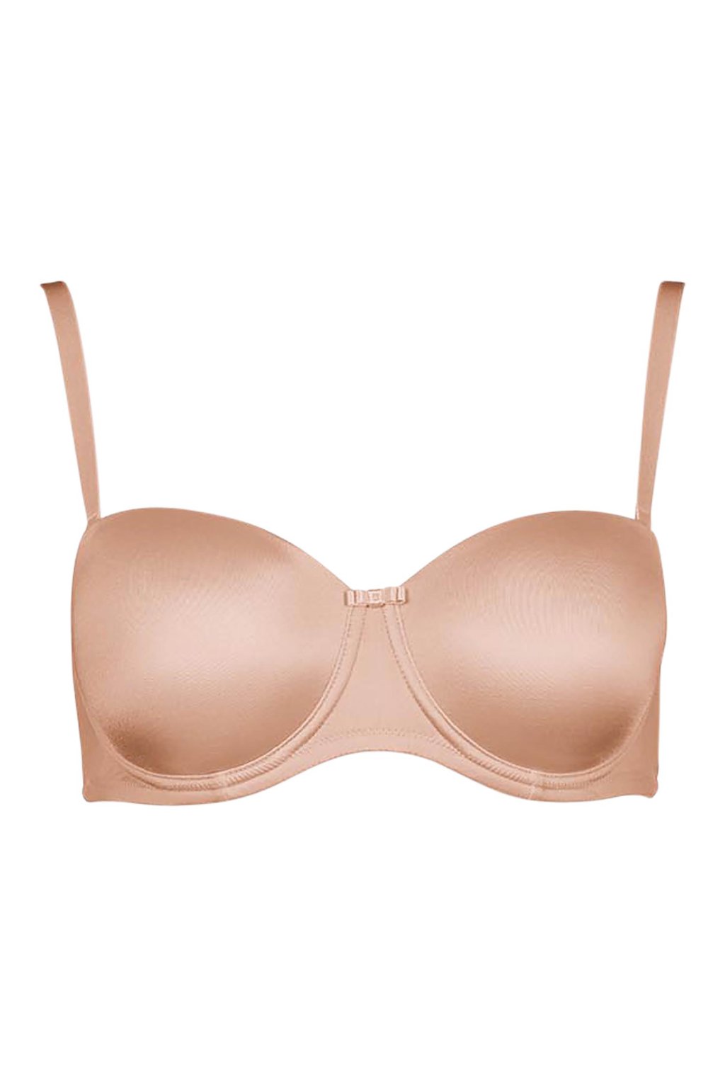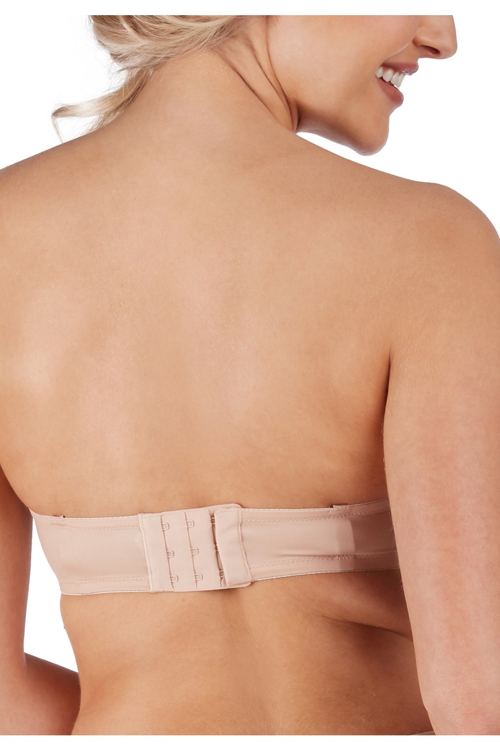 Vystužená bandeau podprsenka s kosticami\Malá ozdobná mašľa v strede prednej časti\Silikónový pásik na bokoch pre lepšiu podporu\Možno nosiť rovno, prekrížene alebo úplne bez ramienok\Nastaviteľné zapínanie na háčiky pre prispôsobenie