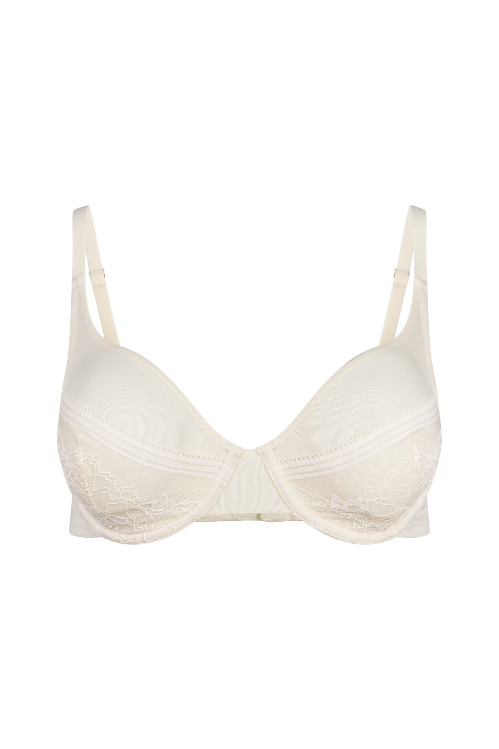 Dámska podprsenka s kosticami s nízkym strihom | Košíčky do polovice pokryté čipkou | Boky a kostice z jemného mikrovlákna | Nastaviteľné a priečne ramienka a zapínanie na háčiky | Čipkovaná podprsenka z recyklovaného mikrovlákna