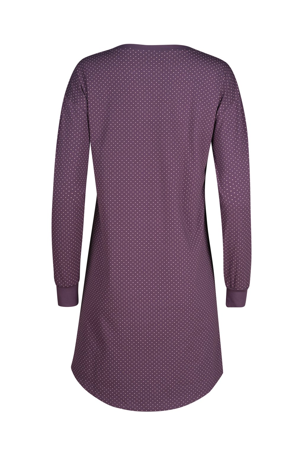 Nočná košeľa s dlhými rukávmi a okrúhlym výstrihom | Mierne spadnuté ramenné švy | Manžety na rukávoch a voľný strih | Spacie tričko s mierne zaobleným lemom | Príjemný pocit vďaka mäkkej bavlnenej a elastanovej tkanine