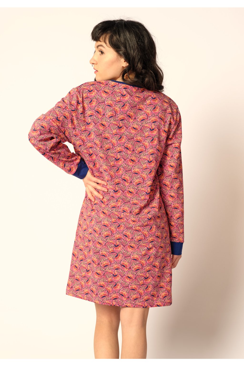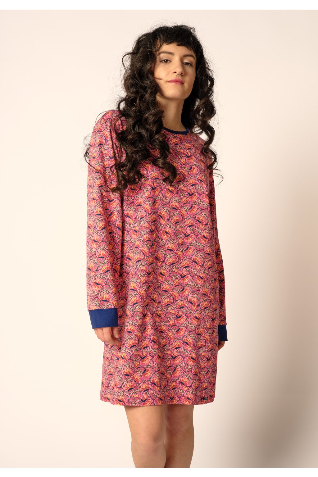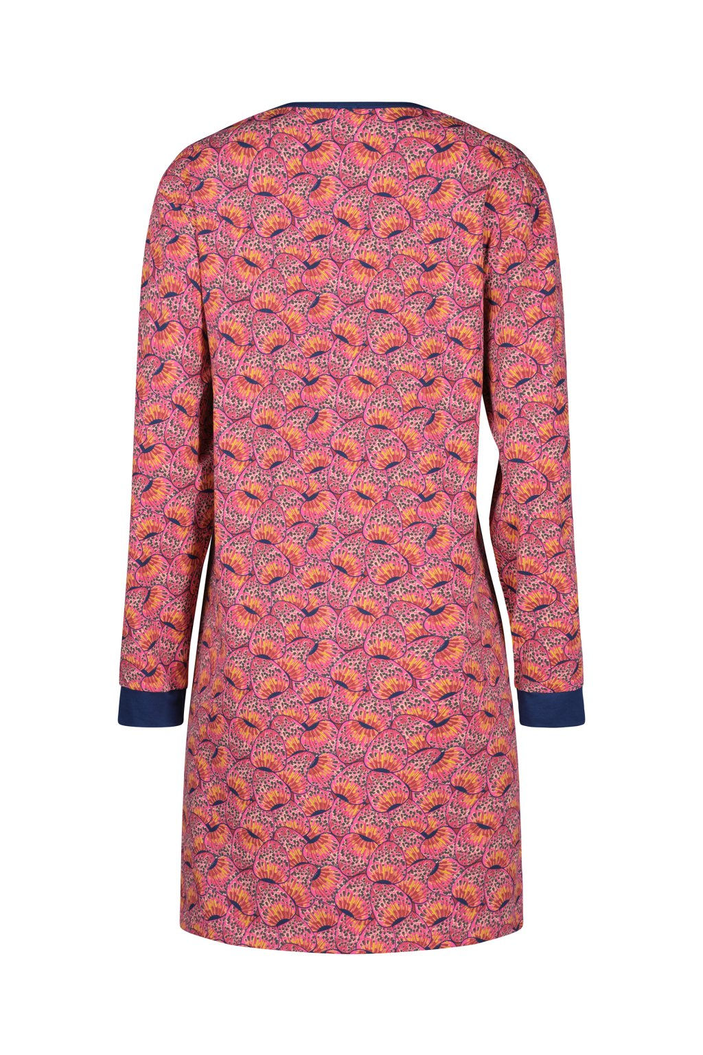 Nočná košeľa s dlhými rukávmi | Nadčasový okrúhly výstrih | Mierne prekrývajúce sa ramená | Volná nočná košeľa s manžetami na rukávoch | Kvalita bavlny a elastanu