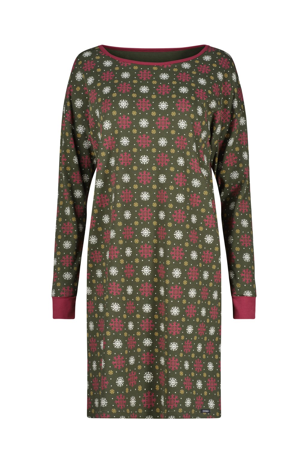 SKINY dámska nočná košeľa dlhý rukáv Night In Skiny WX - rosemary snowflakes