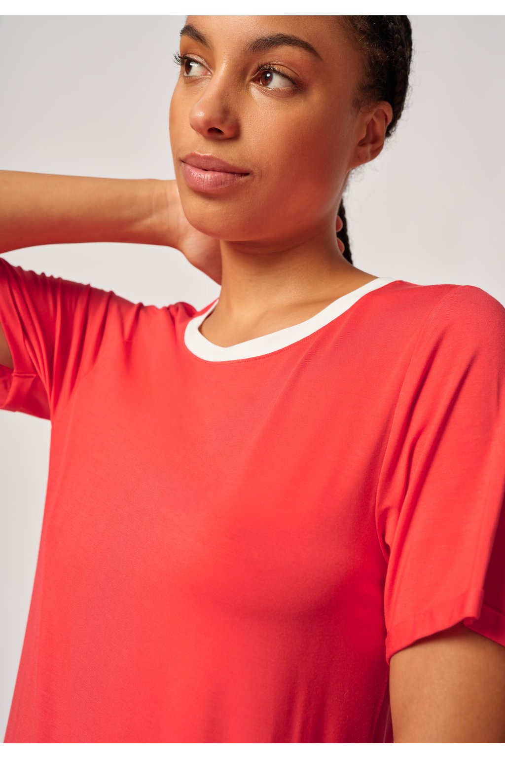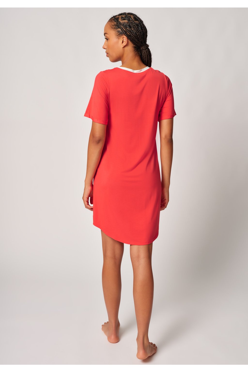 Nočná košeľa s krátkymi rukávmi a okrúhlym výstrihom | Jemné ohrnutie na leme rukávov | Voľne padnúca košeľa na spanie | Nočná bielizeň so zaobleným lemom | Mäkká bambusová viskóza pre vysoký komfort nosenia