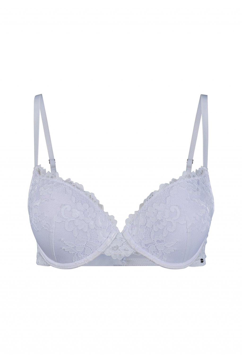 Vystužená push-up podprsenka s kosticami | Celoplošný dizajn so zvodnou čipkou | Bočná časť z mäkkého mikrovlákna | Nastaviteľné ramienka pre individuálne pohodlie | Nastaviteľné zapínanie na háčiky