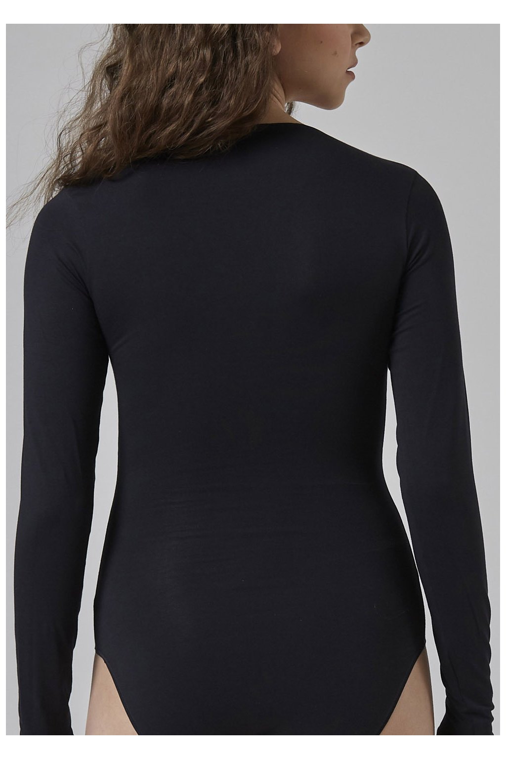 Pohodlné dámske body s dlhými rukávmi\Moderný dizajn s okrúhlym výstrihom\Strih v spodnej časti ako klasický slip\Ploché spracovanie gumičiek\Jednoduché rozopínanie pomocou tlačidiel na body