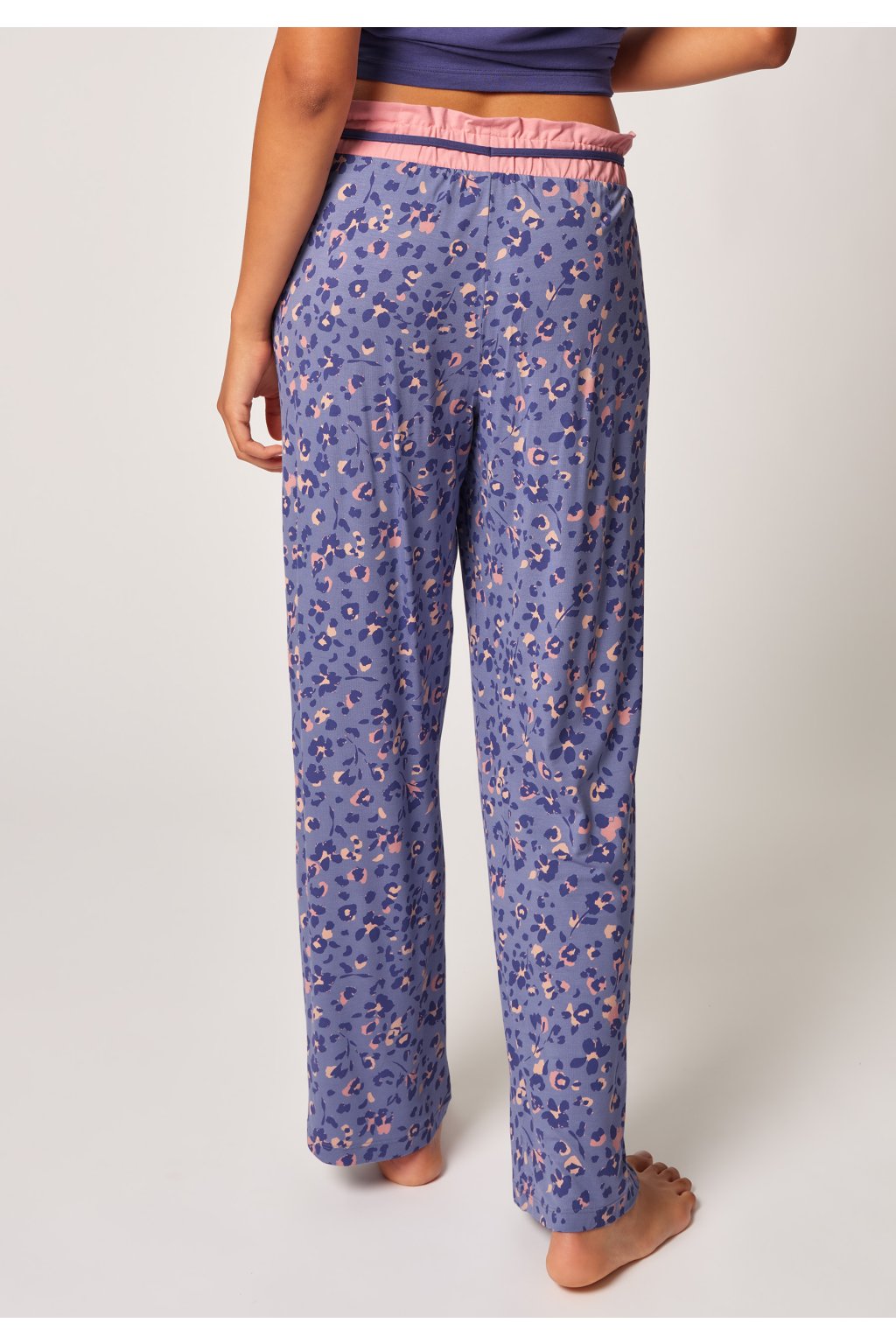 Dlhé pyžamové nohavice so širokým strihom v páse potiahnutý látkou |. Volány bez gumy na hornom okraji nohavíc |