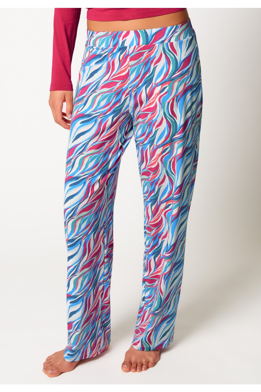 Dlhé pyžamové nohavice pre ženy | Rovné nohavice na spanie | Pripevnený pás potiahnutý látkou | Hladký predný diel a stiahnutý zadný diel | Vysokokvalitná zmes modalu a bavlny