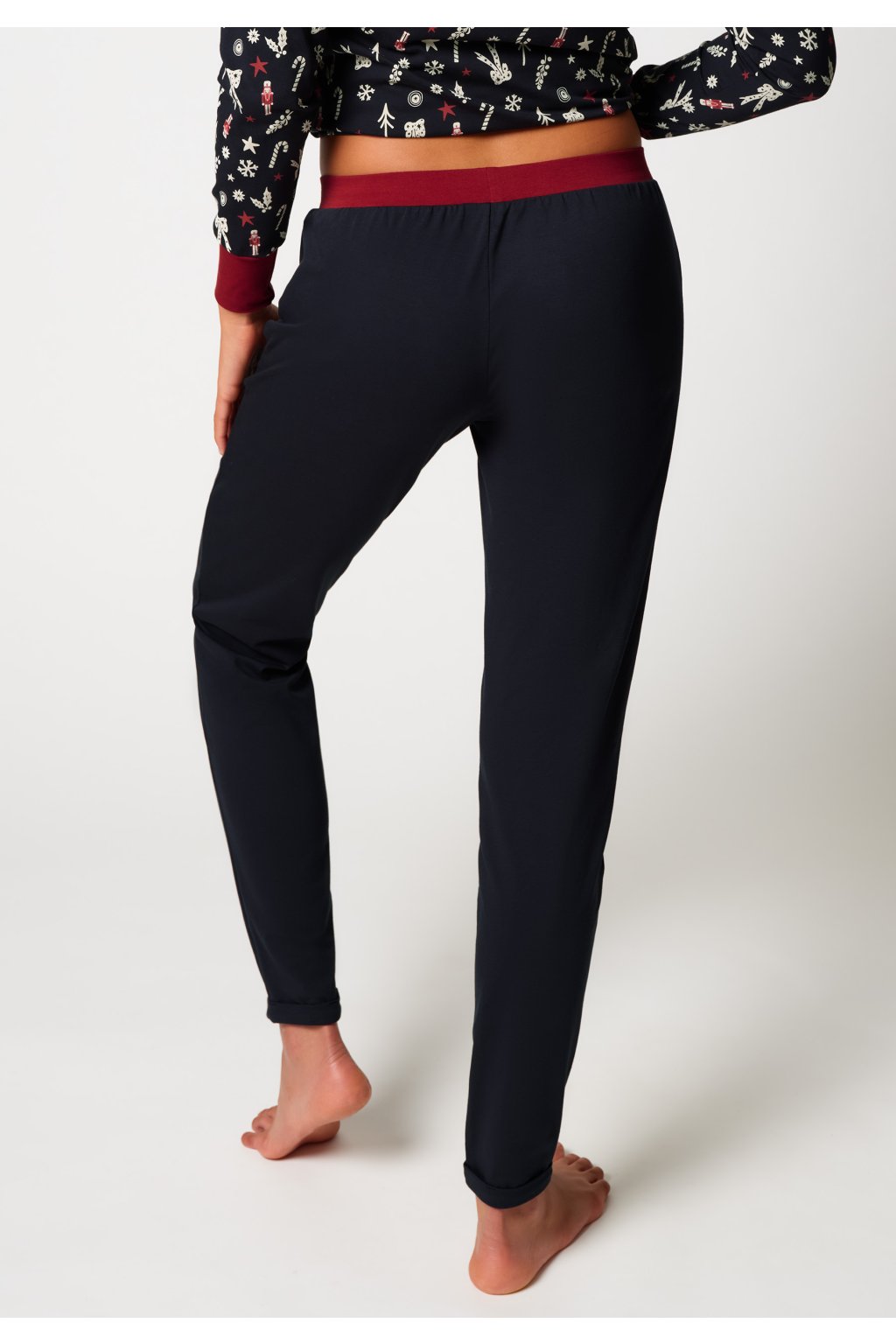 Dlhé nohavice na spanie pre ženy | Zúžené nohavice | Elastický pás potiahnutý látkou pre maximálne pohodlie | Nohavice na spanie s pútavými manžetami na leme | Vysokokvalitná zmes bavlny a elastanu