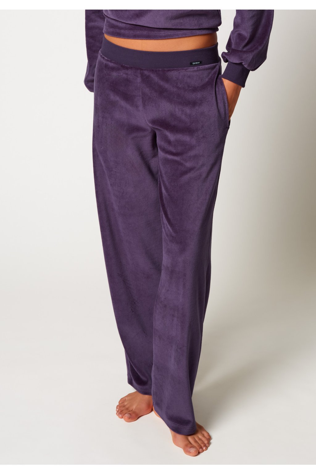 Dlhé pyžamové nohavice pre ženy | Rovný strih | Teplákové nohavice s bočnými vreckami | Krásny rebrovaný pás | Dámske nohavice vyrobené zo zamatu a rebrovanej látky.