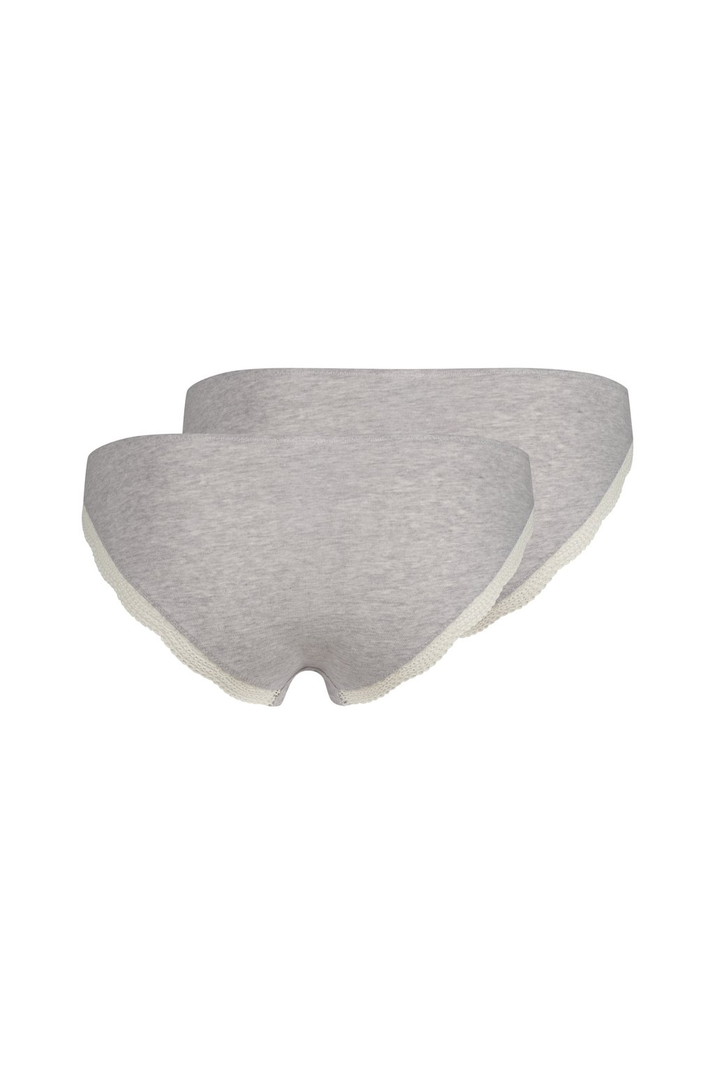 Nohavičky Rio bedrového strihu | Praktické dvojbalenie spodnej bielizne | Čipka na zadnej nohavici prechádzajúca dopredu | Úzky elastický pás a vnútorná guma na nohavici | Bavlna so strečom pre super pohodlie
