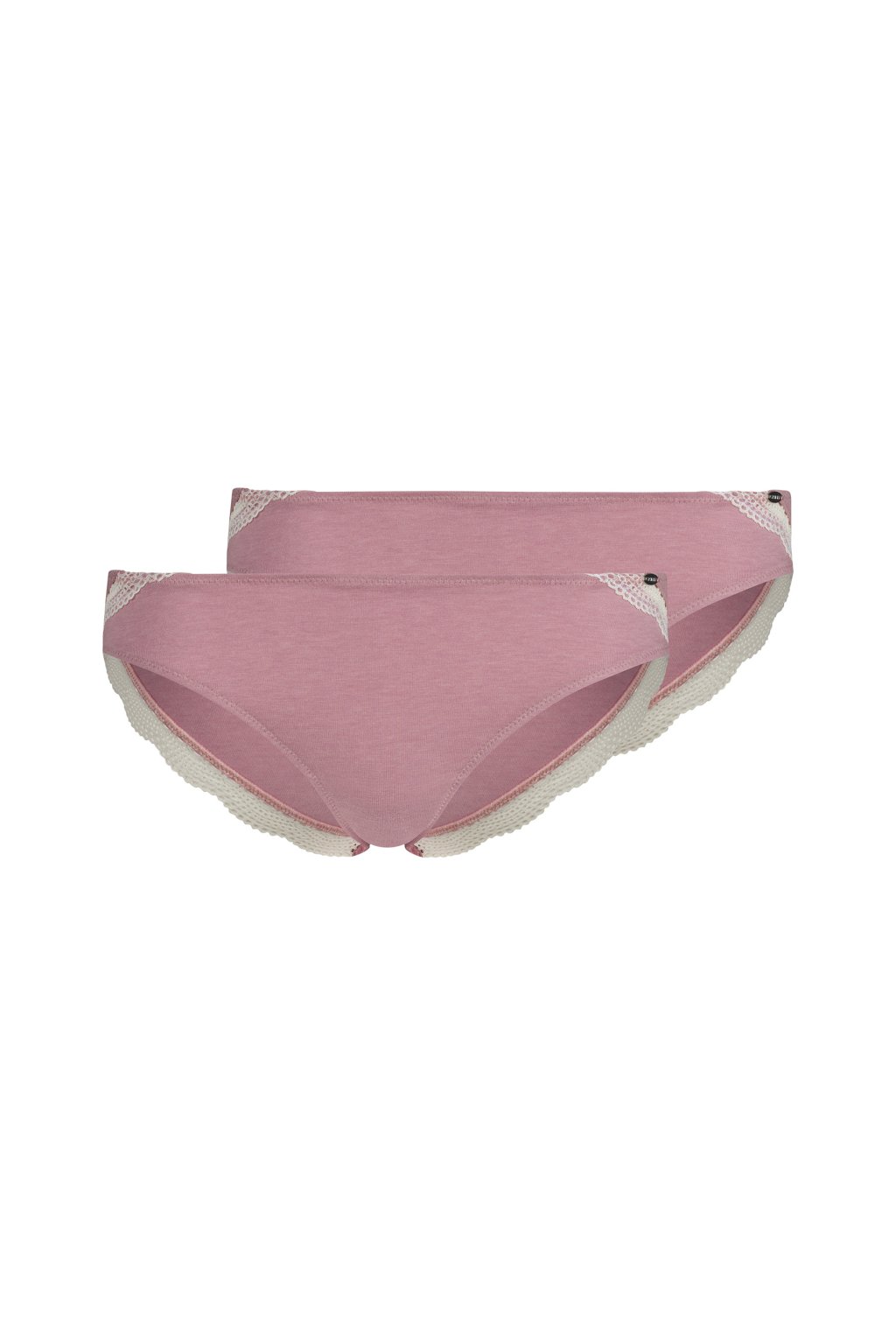 Nohavičky Rio bedrového strihu | Praktické dvojbalenie spodnej bielizne | Čipka na zadnej nohavici prechádzajúca dopredu | Úzky elastický pás a vnútorná guma na nohavici | Bavlna so strečom pre super pohodlie