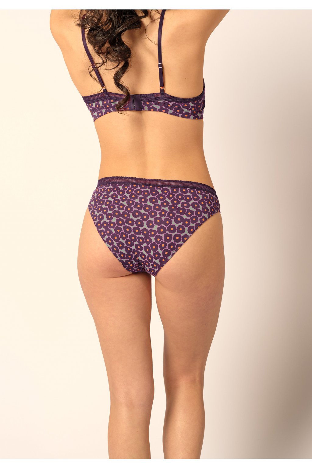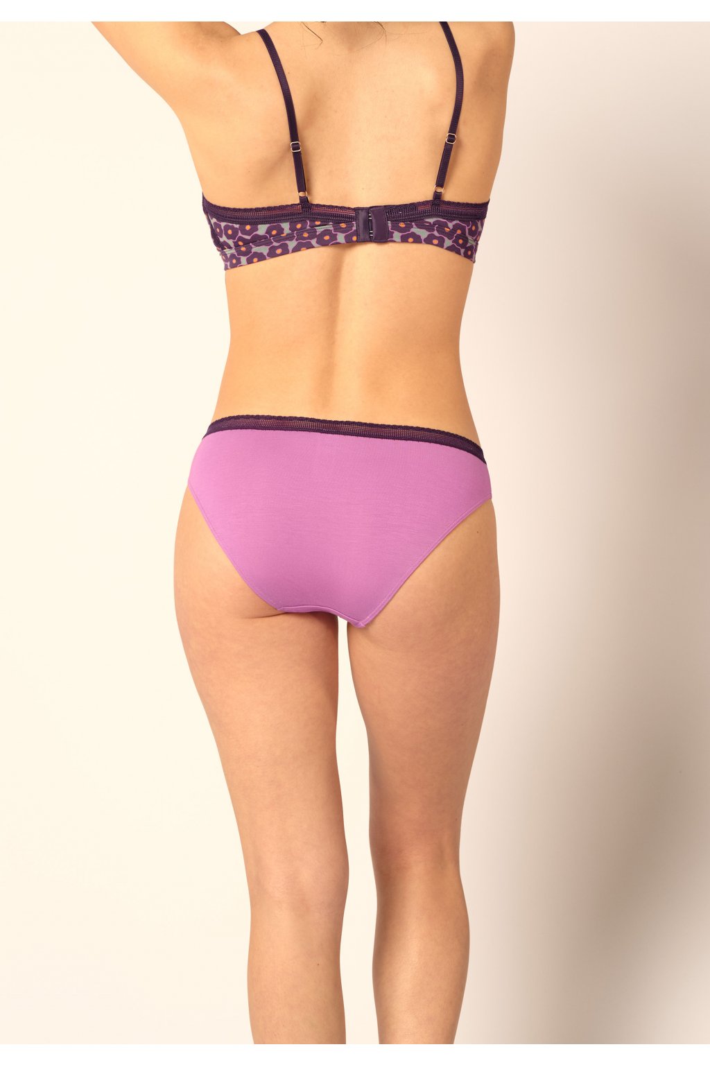 Dámske nohavice s bokovým strihom | Predná a zadná časť z mäkkej viskózy | Tkanina z rýchlo rastúceho bambusu | Grafický čipkový pás okolo pása | Praktické dvojité balenie