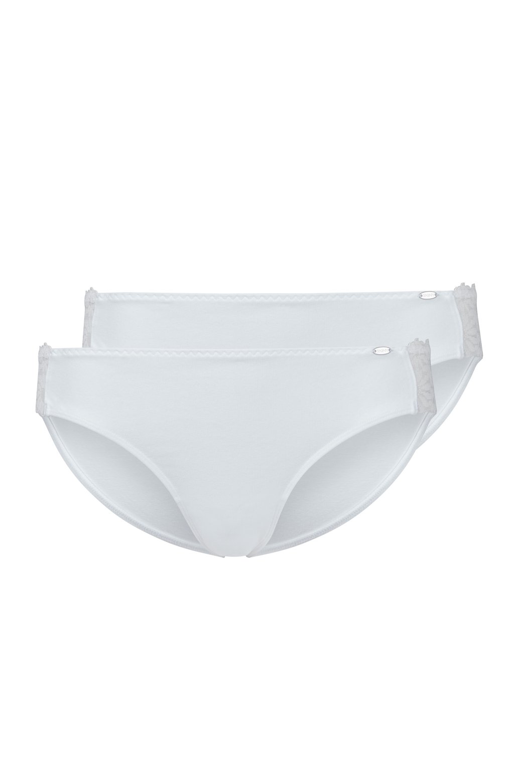 Pohodlné nohavičky Rio v dvojitom balení | Bokový strih pre príjemné pohodlie | Ozdobná čipka na boku | Pružná a mäkká bavlnená a elastanová tkanina | Spodná bielizeň je nepriehľadná vpredu aj vzadu