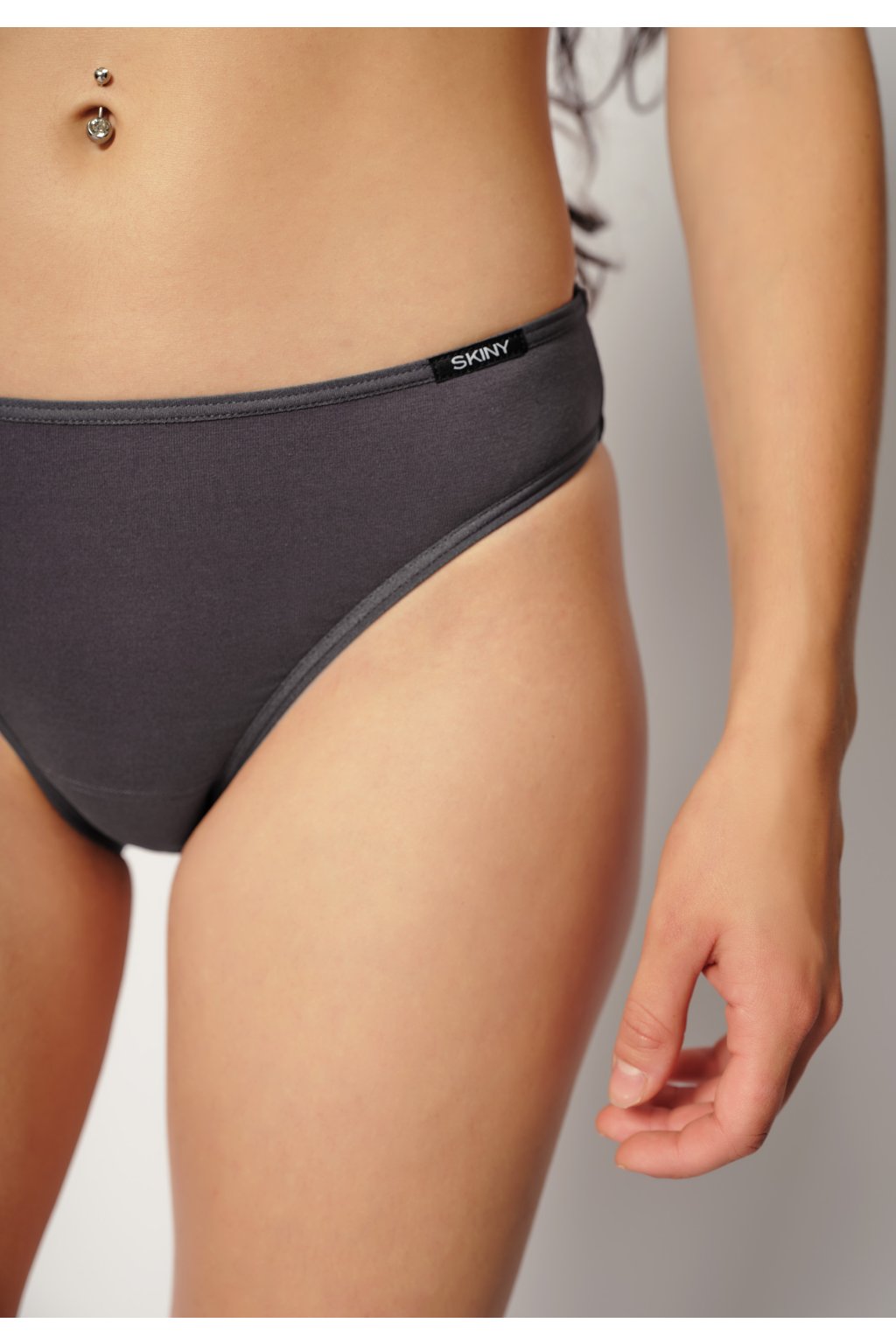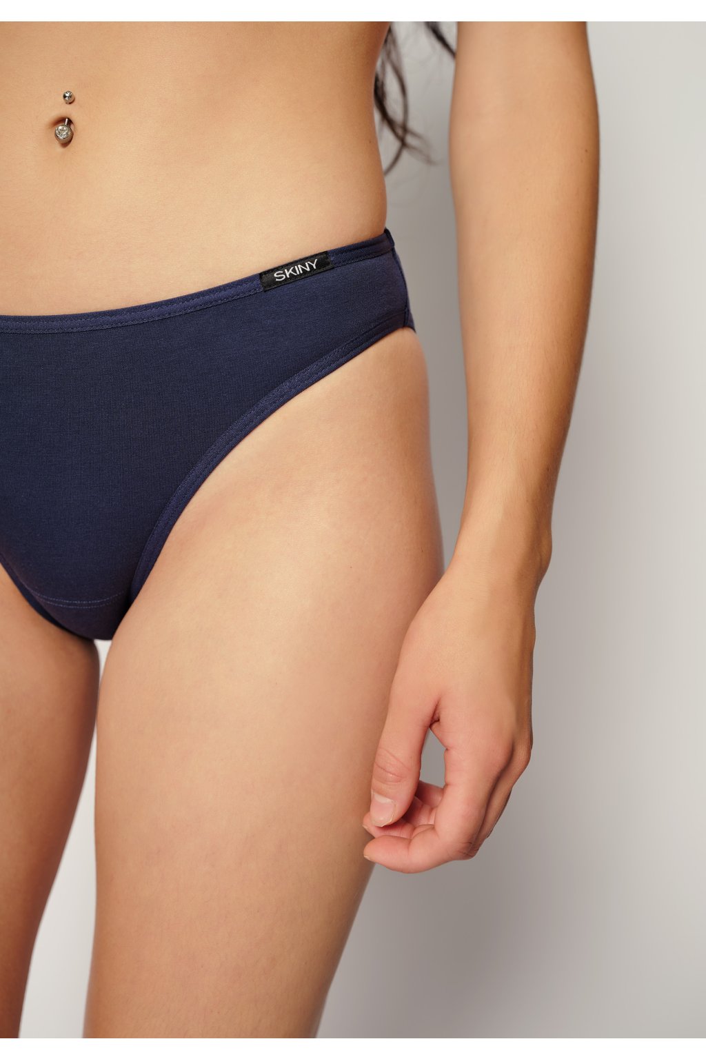 Dámska spodná bielizeň s vyšším stojačikom | K dispozícii v praktickom balení po 3 kusoch | Elastický pás a nohavičky zabezpečujú pevné držanie | Mäkká bavlnená a elastanová tkanina | Nohavičky Rio s logom SKINY na prednom páse