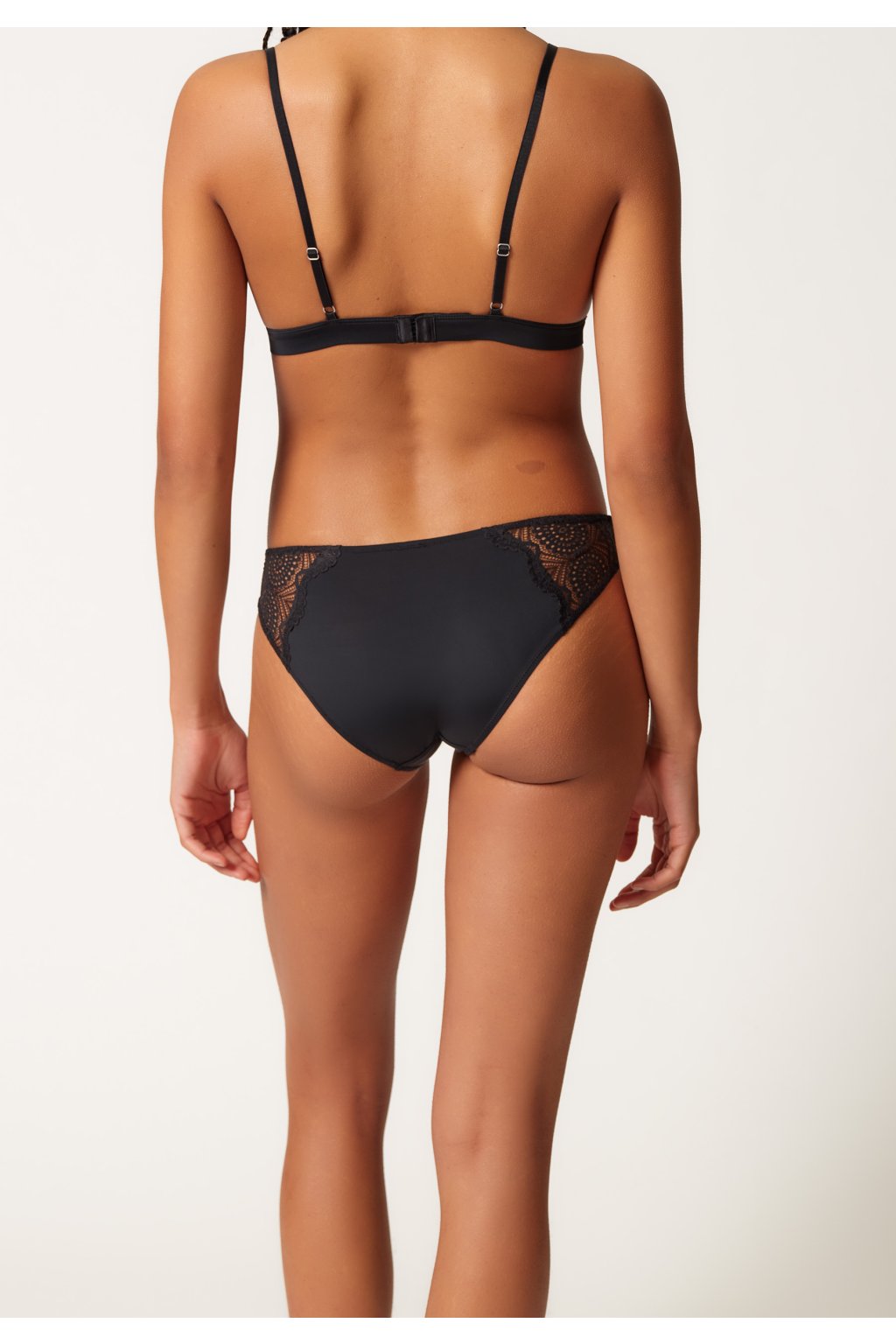 Tieto nohavičky Rio z mäkkého mikrovlákna sú príjemné na dotyk. Vyzerajú veľmi pekne a žensky, najmä vďaka jemným čipkovým vsadkám. Čipka sa tiahne po prednej a zadnej strane nohavičiek. Aj to je lichotivé. A, samozrejme, mimoriadne dobre sa hodí k podprsenkám z tohto radu.